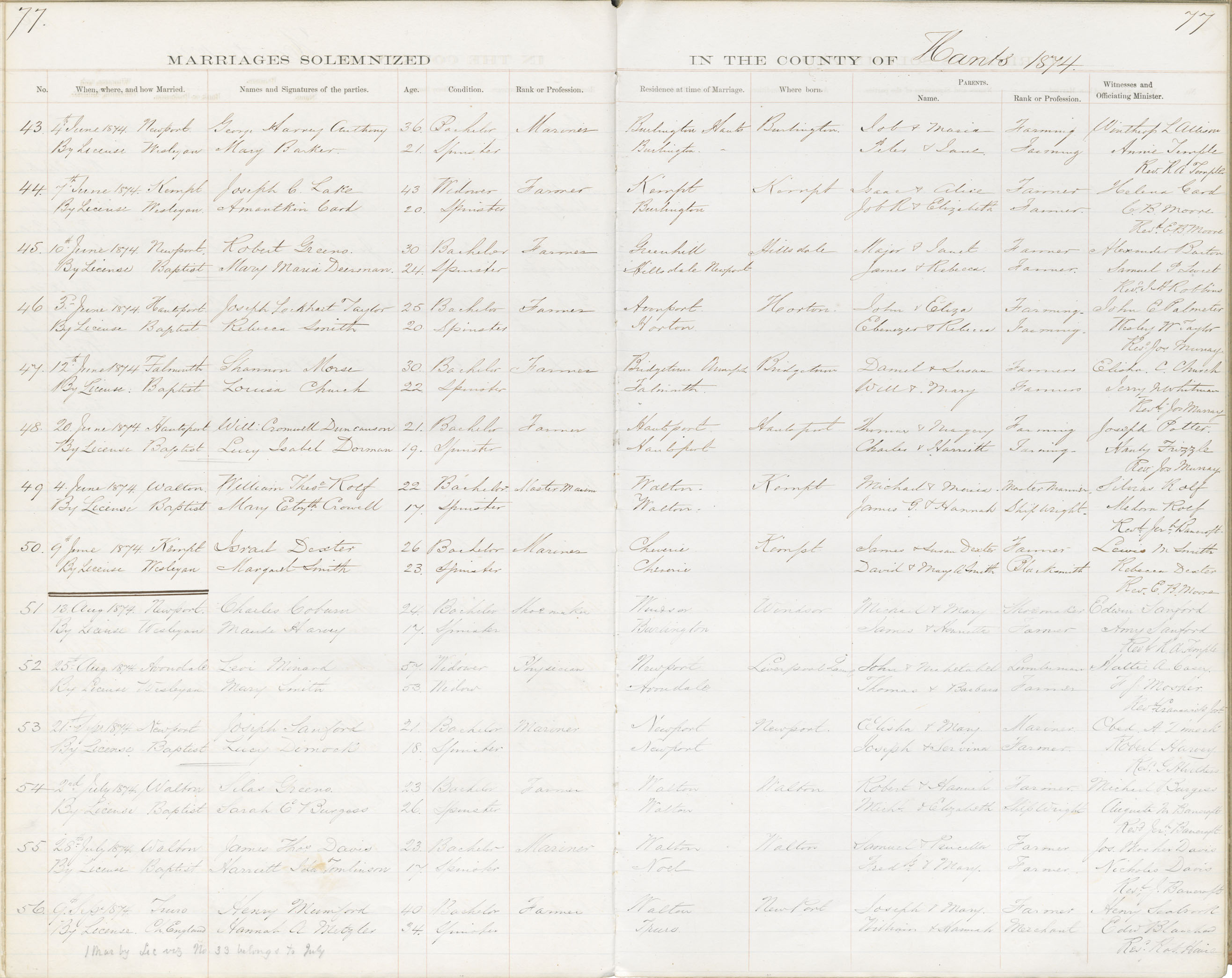 Registration: Year: 1874 book: 1823 page: 77 number: 56