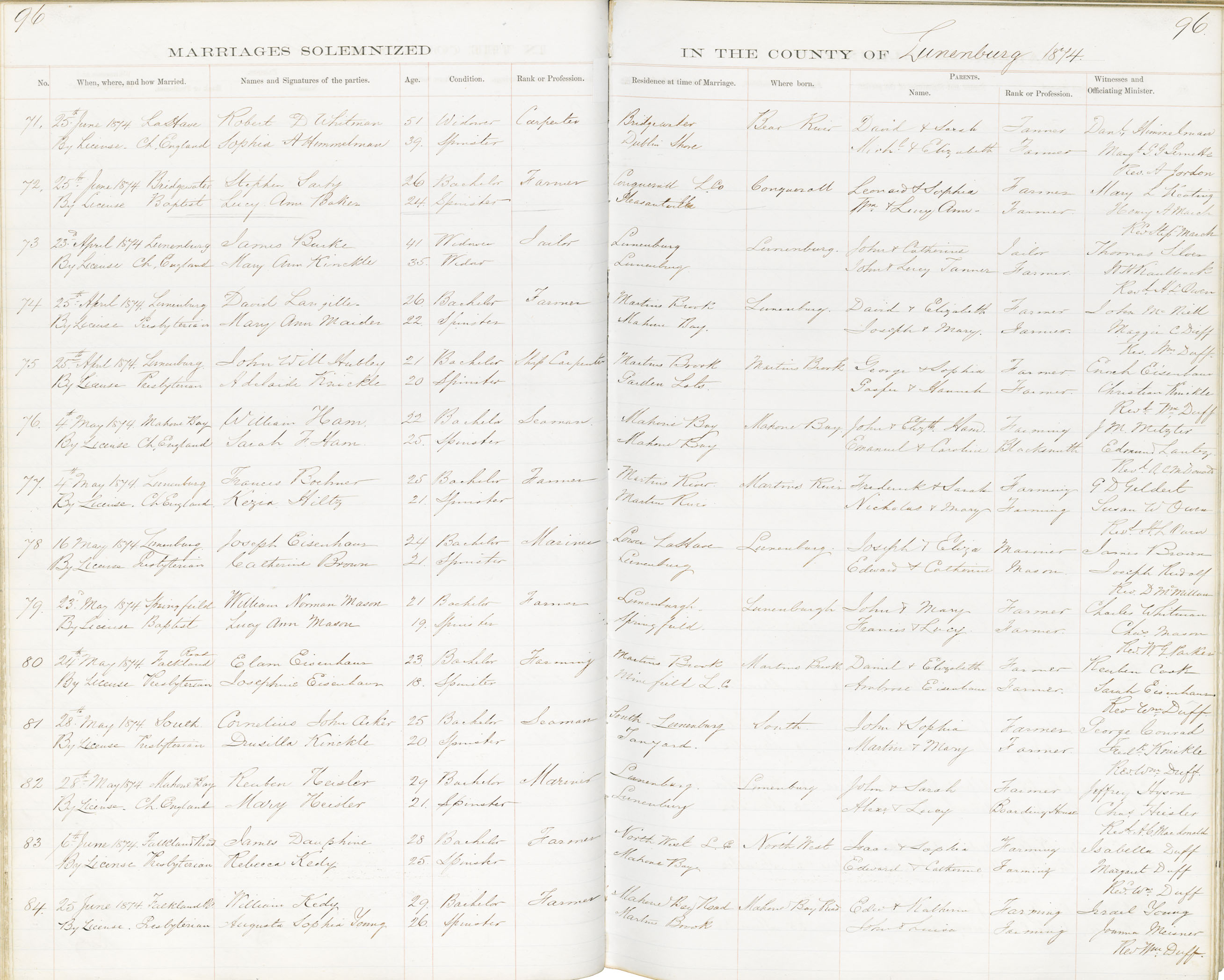 Registration: Year: 1874 book: 1828 page: 96 number: 84