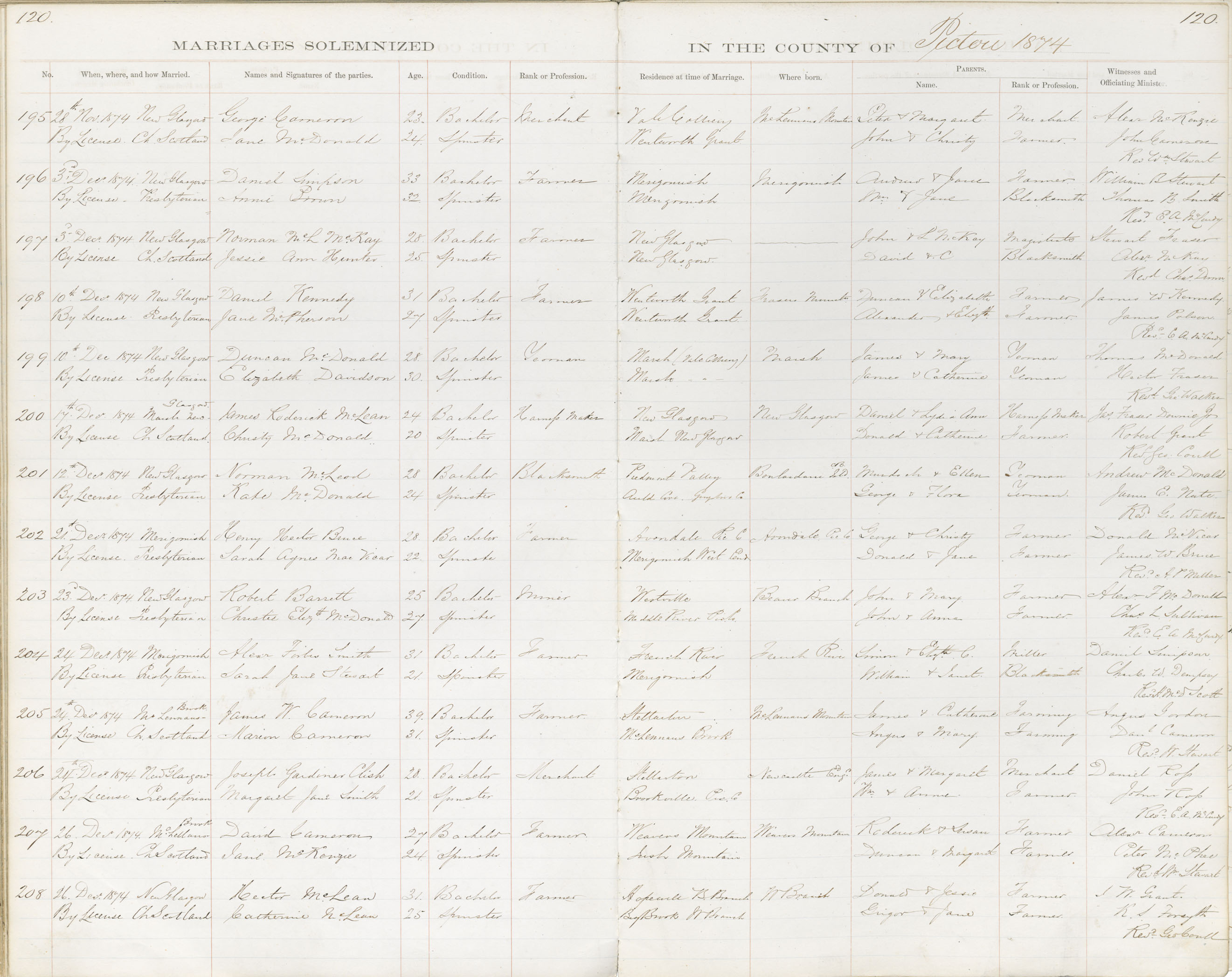 Registration: Year: 1874 book: 1831 page: 120 number: 208