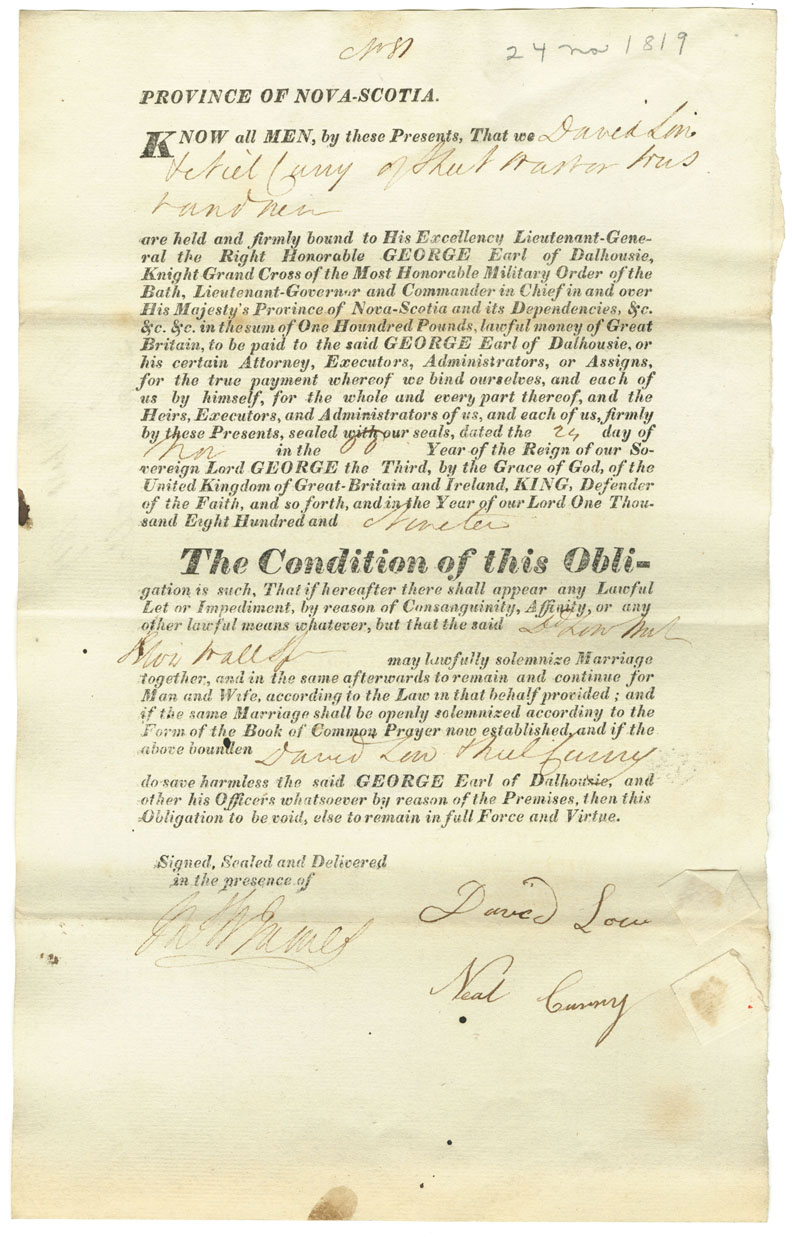 Note: signed by Neal Curry, Sheet Harbour, yeoman
