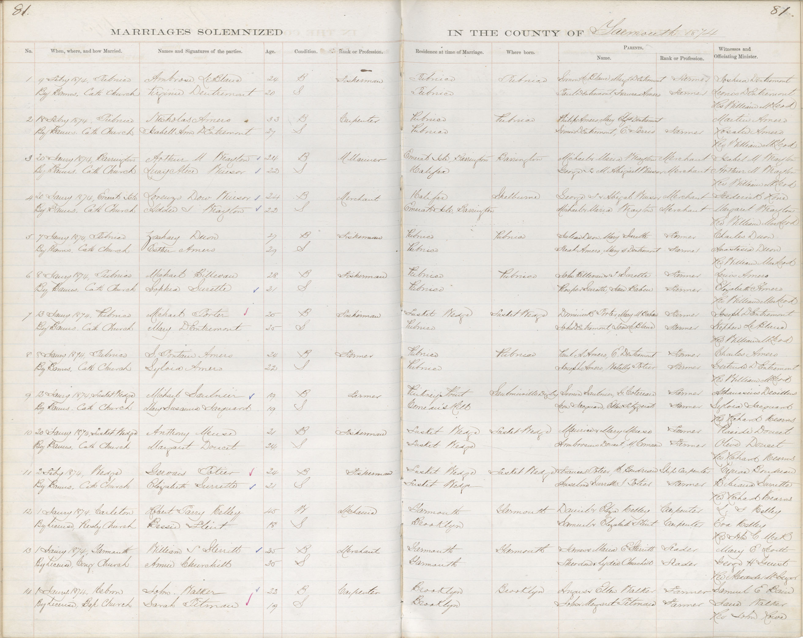 Registration: Year: 1874 book: 1839 page: 81 number: 14