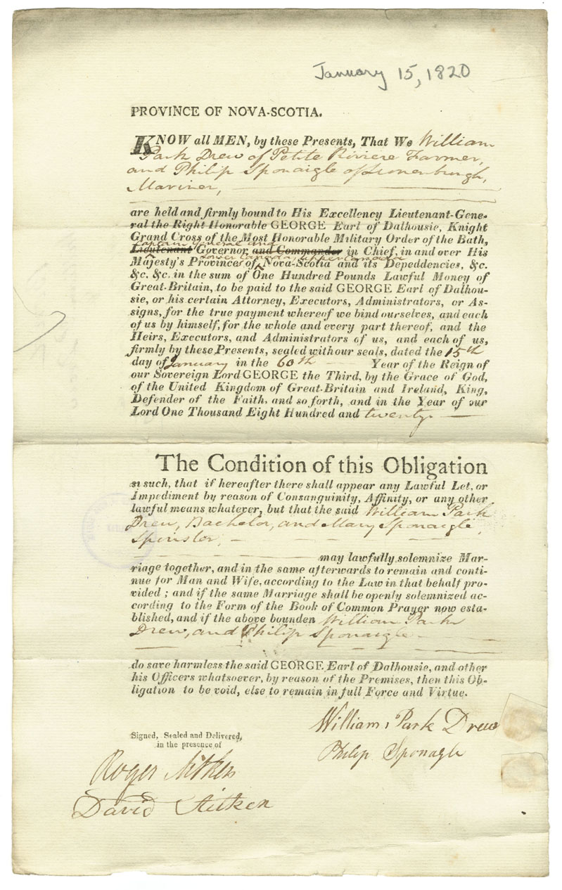 Note: signed by Philip Sponagle, Lunenburg, mariner