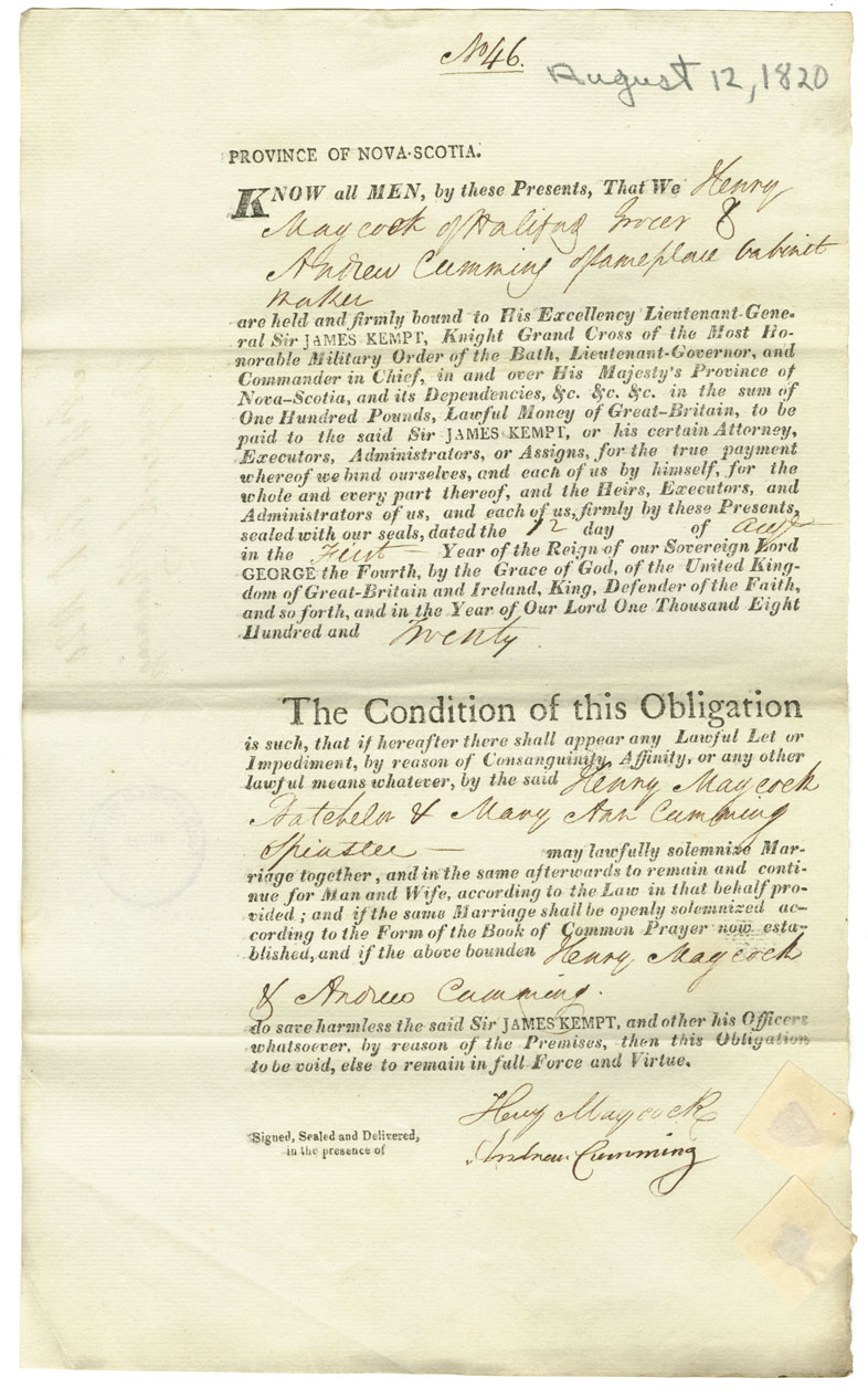 Note: signed by Andrew Cumming, cabinet maker, Halifax