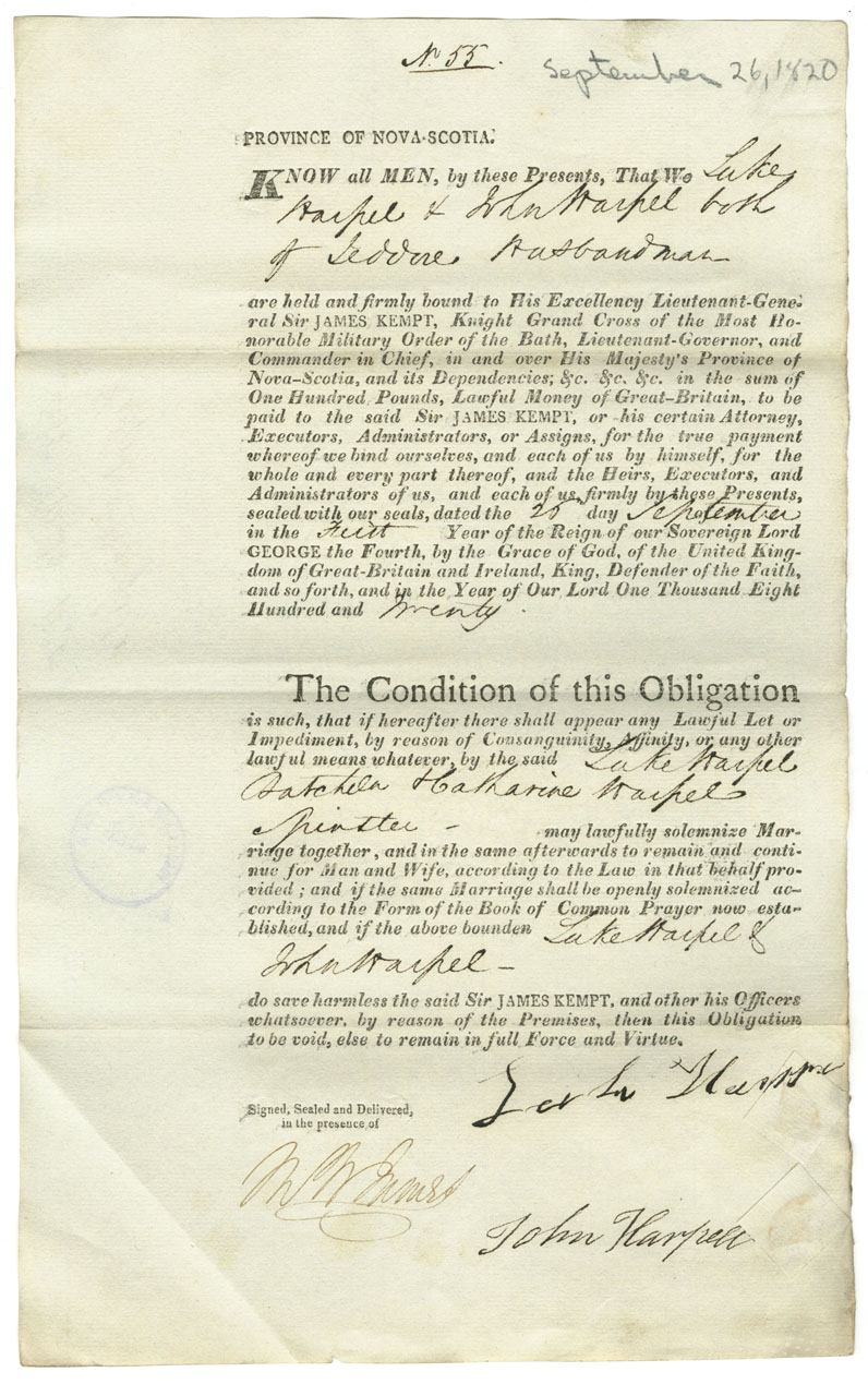 Note: signed by John Harpel, husbandman, Jeddore