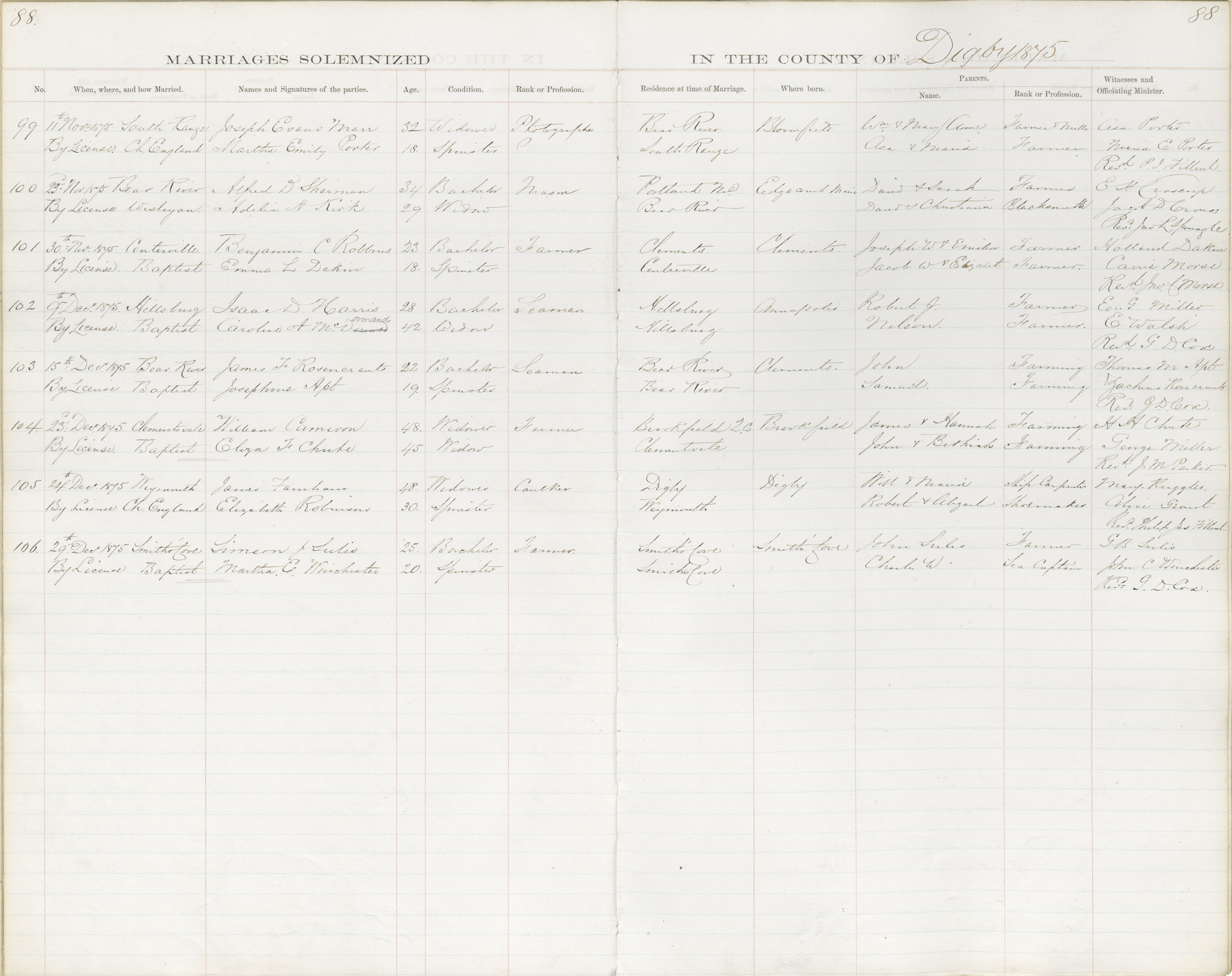 Registration: Year: 1875 book: 1812 page: 88 number: 99
