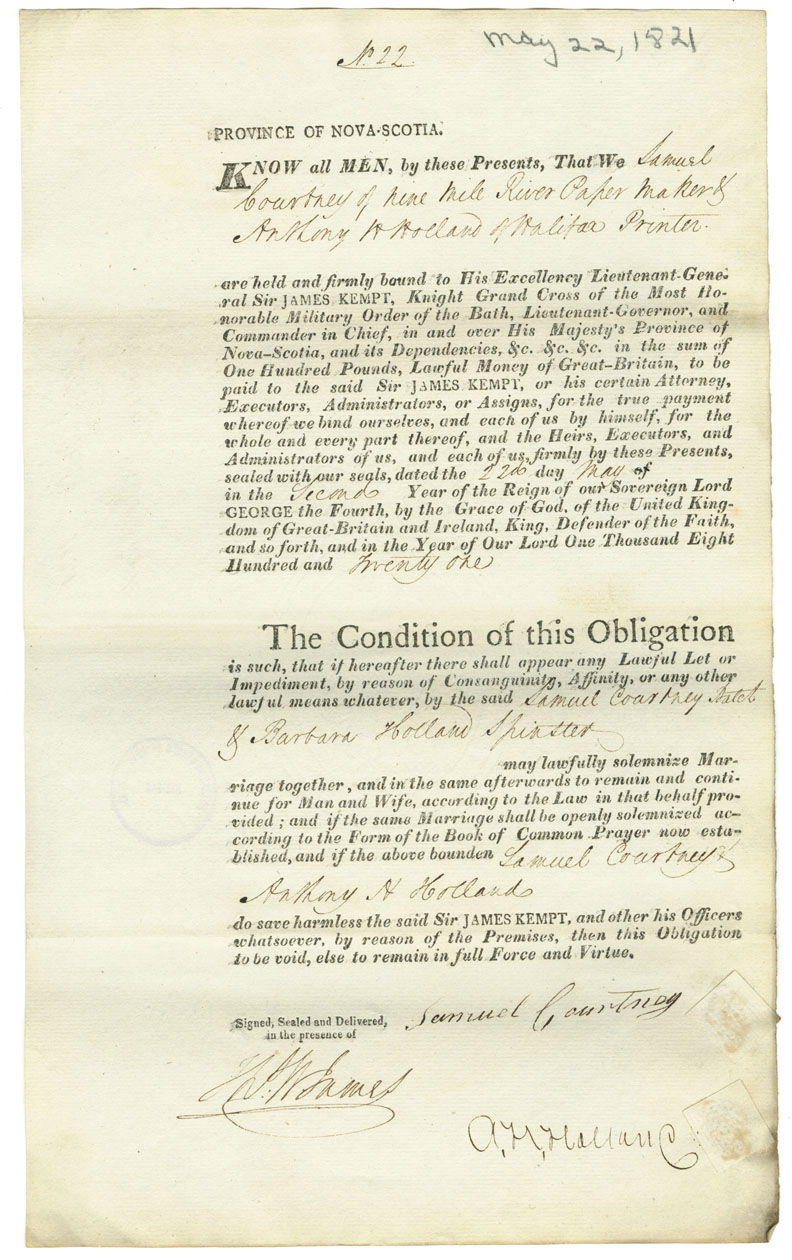 Note: signed by Anthony H. Holland, Halifax, printer