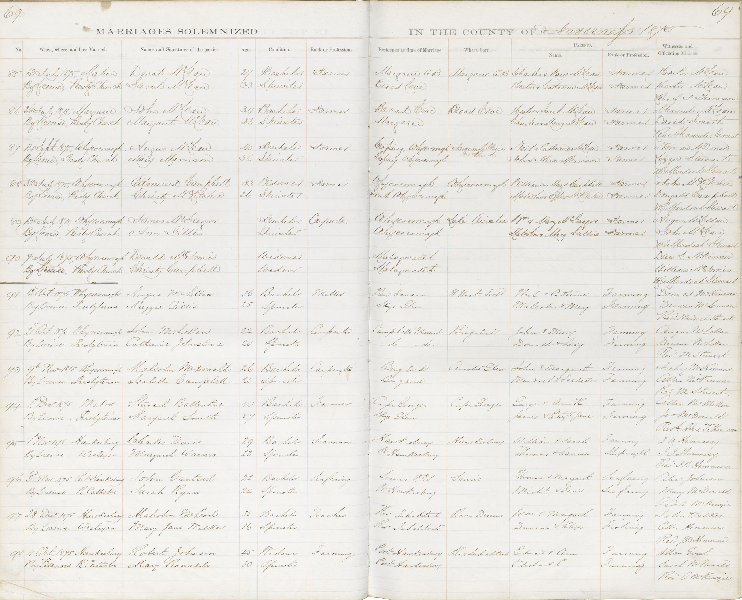 Registration: Year: 1875 book: 1825 page: 69 number: 85
