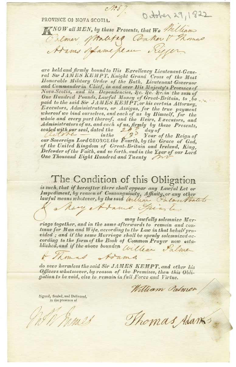 Note: signed by Thomas Adams, Halifax, rigger
