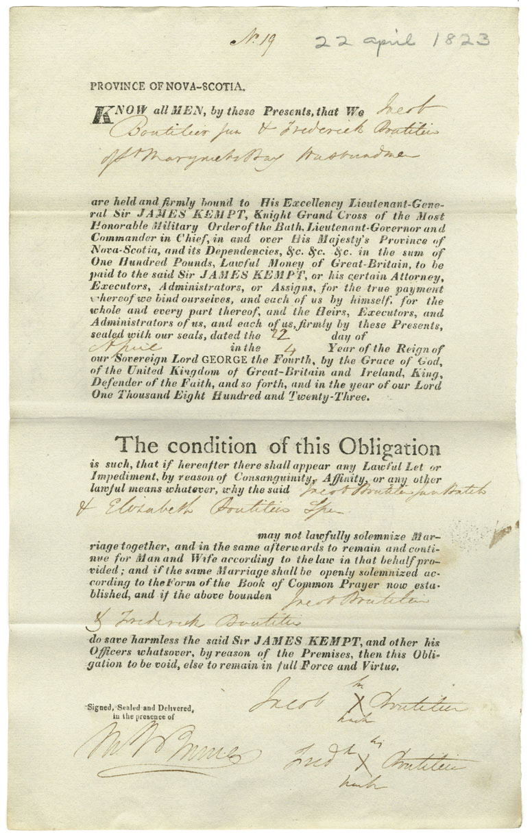 Note: signed by Frederick Boutilier, St. Margaret's Bay, husbandman