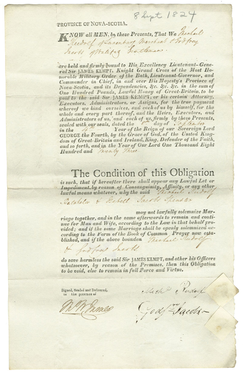Note: signed by Godfrey Jacobs, Halifax, gentleman