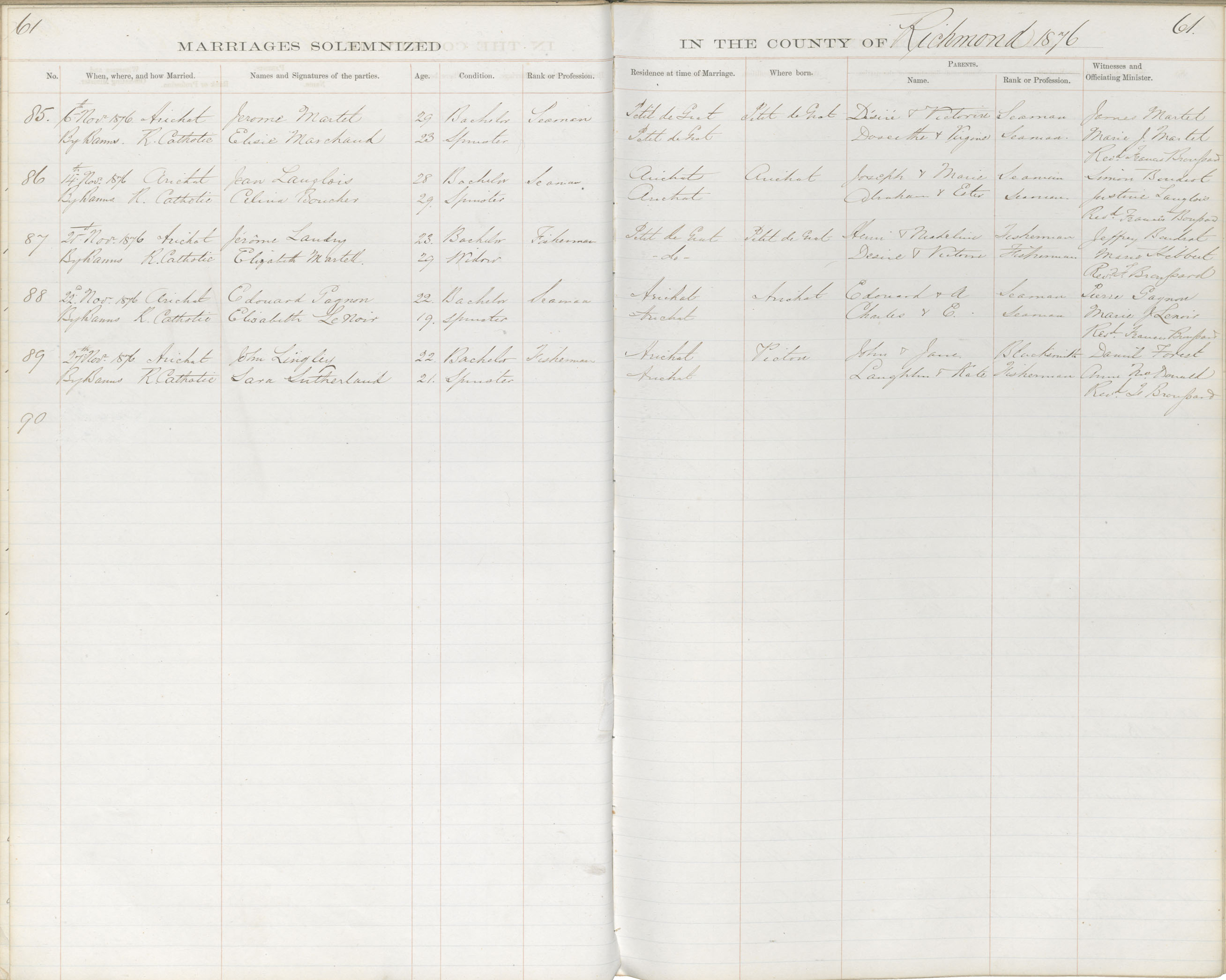 Registration: Year: 1876 book: 1835 page: 61 number: 85