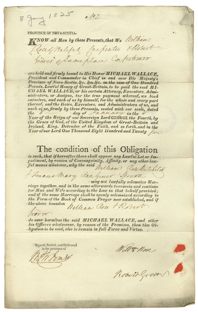Note: signed by William Rose and Robert Grover, Halifax, confectioner