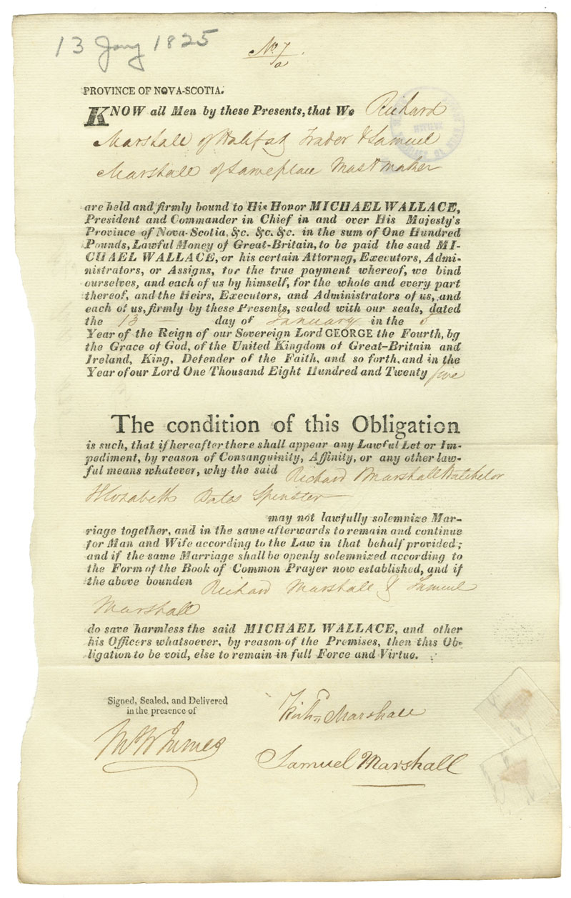 Note: signed by Richard Marshall and Samuel Marshall, Halifax