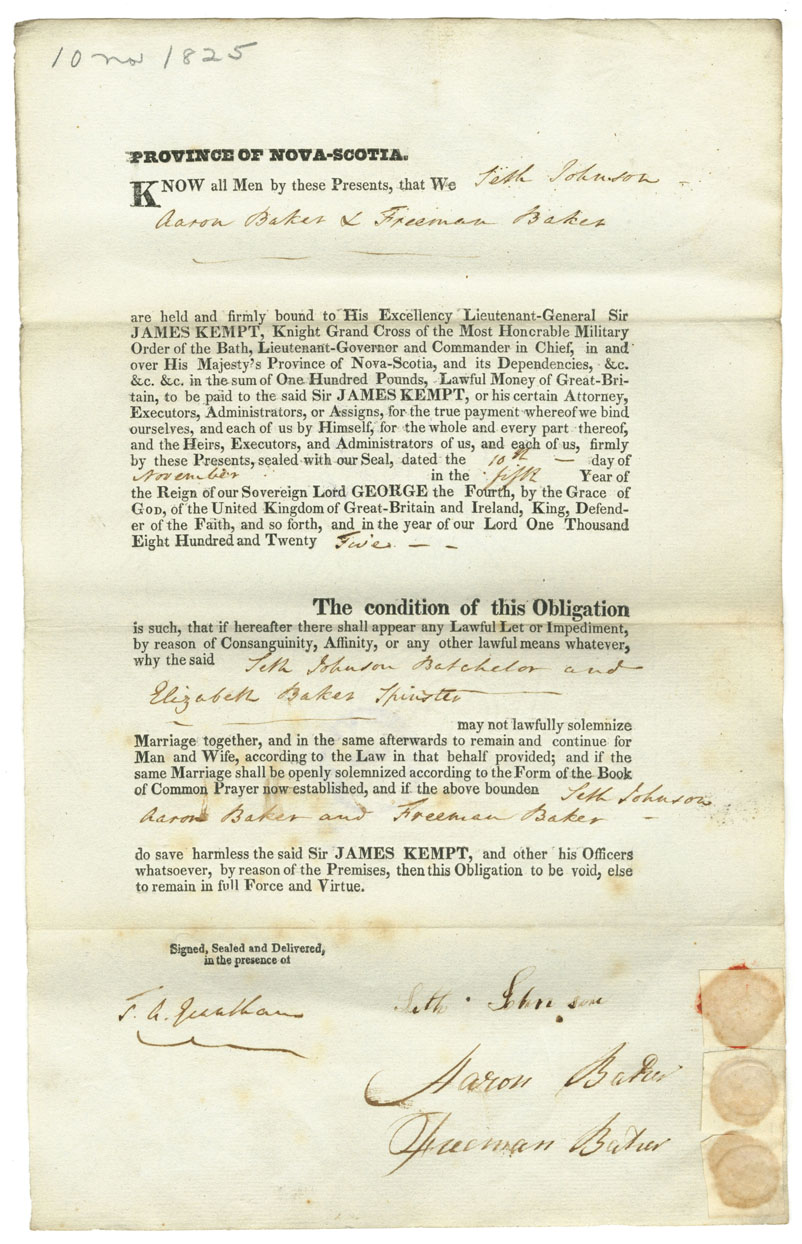 Note: signed by Seth Johnson, Aaron Baker, Freeman Baker