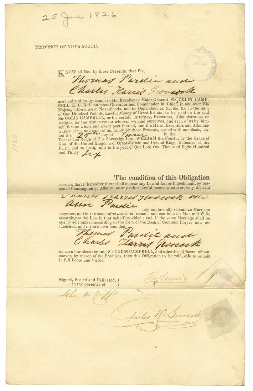 Note: signed by Charles Harris Grovcock and Thomas Purdie