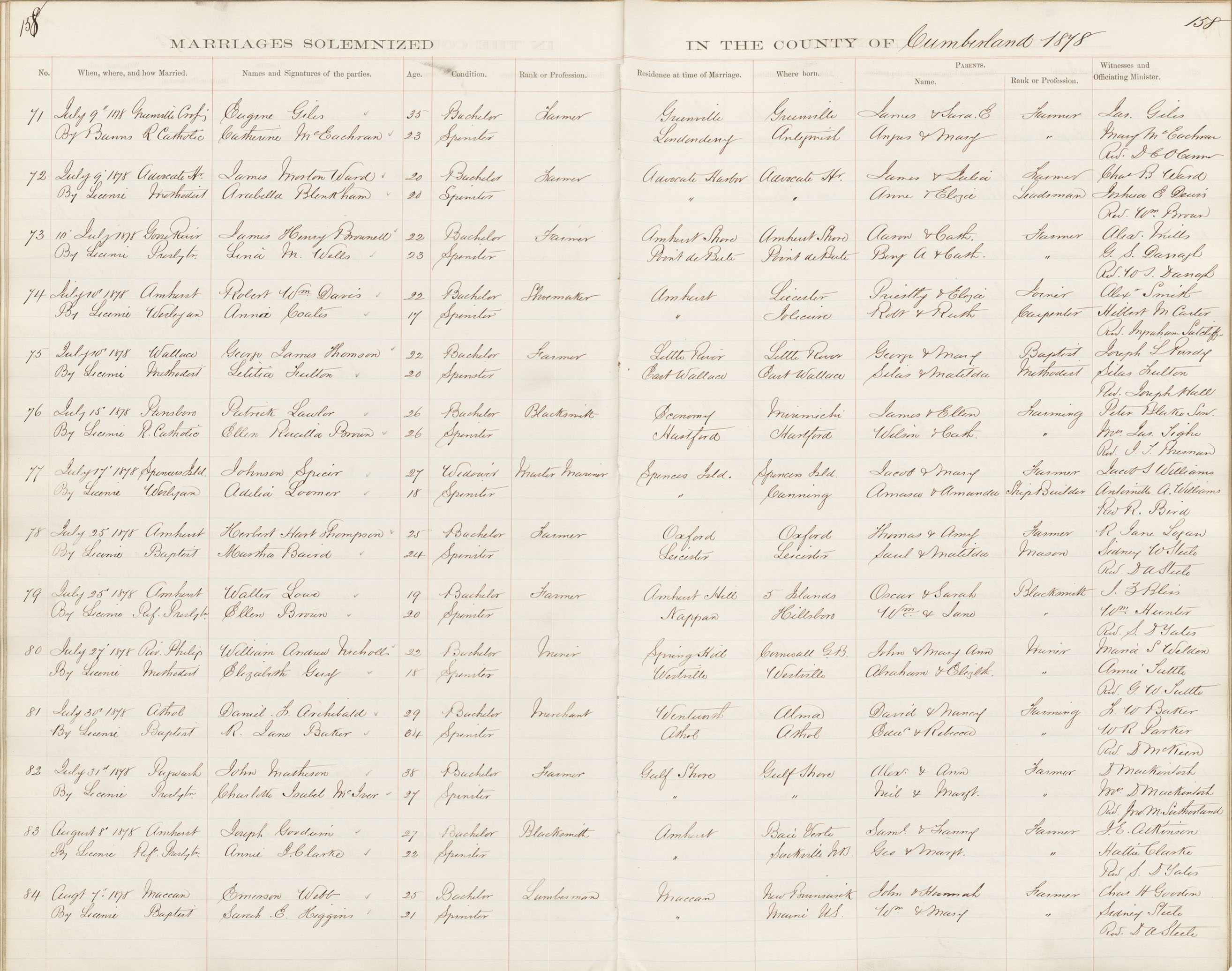 Registration: Year: 1878 book: 1809 page: 158 number: 84