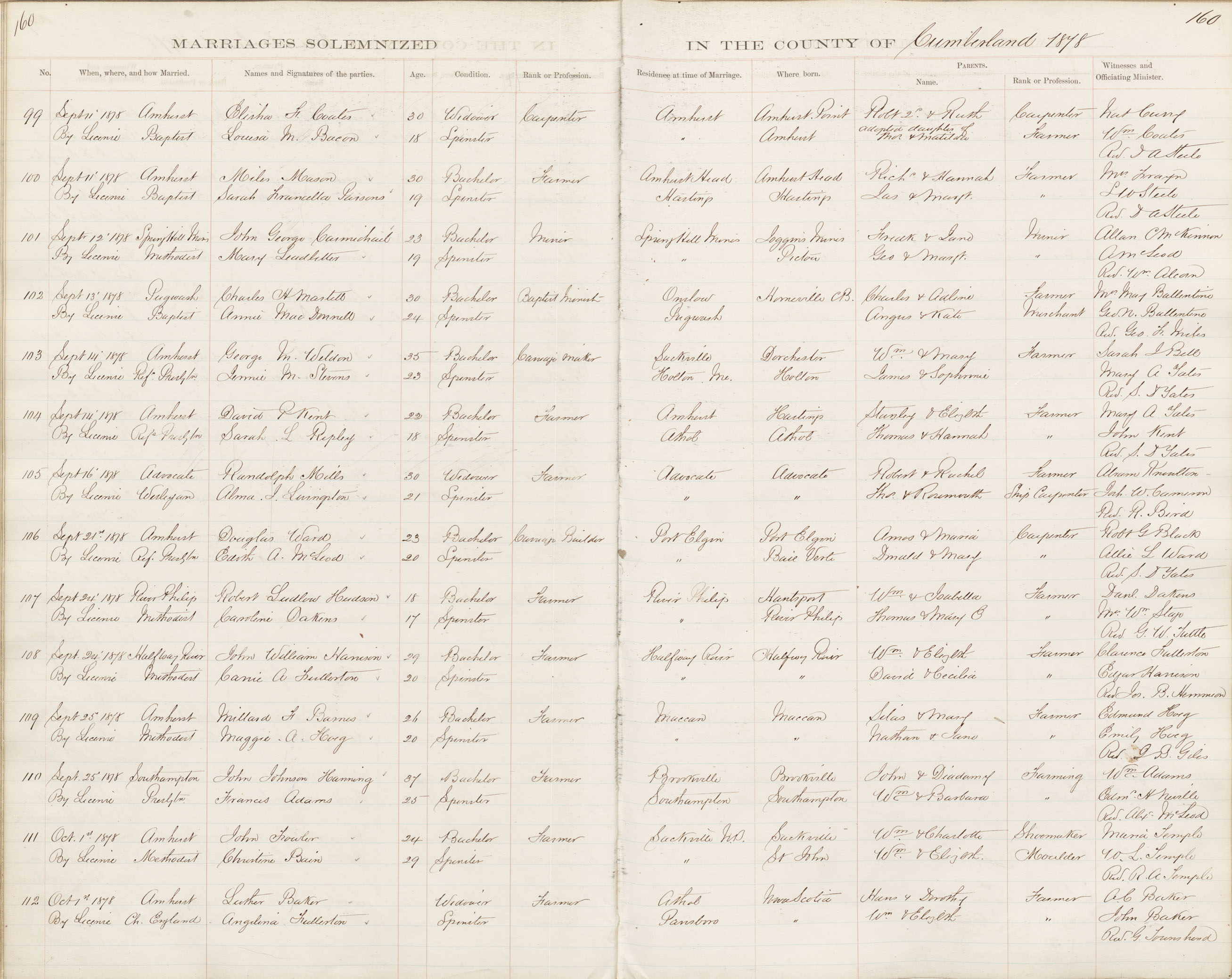 Registration: Year: 1878 book: 1809 page: 160 number: 112