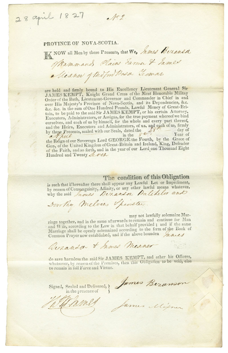 Note: signed by James Maxner, Bedford Basin, yeoman