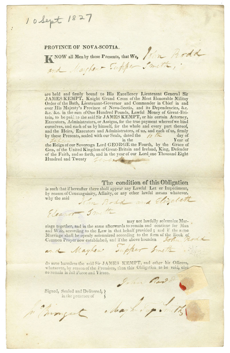 Note: signed by Mayhew Tupper Smith