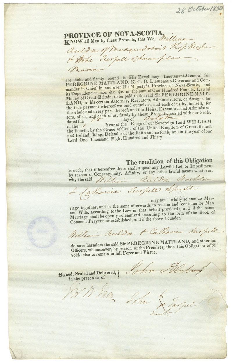 Note: signed by John Turpell, Musquodoboit, mariner