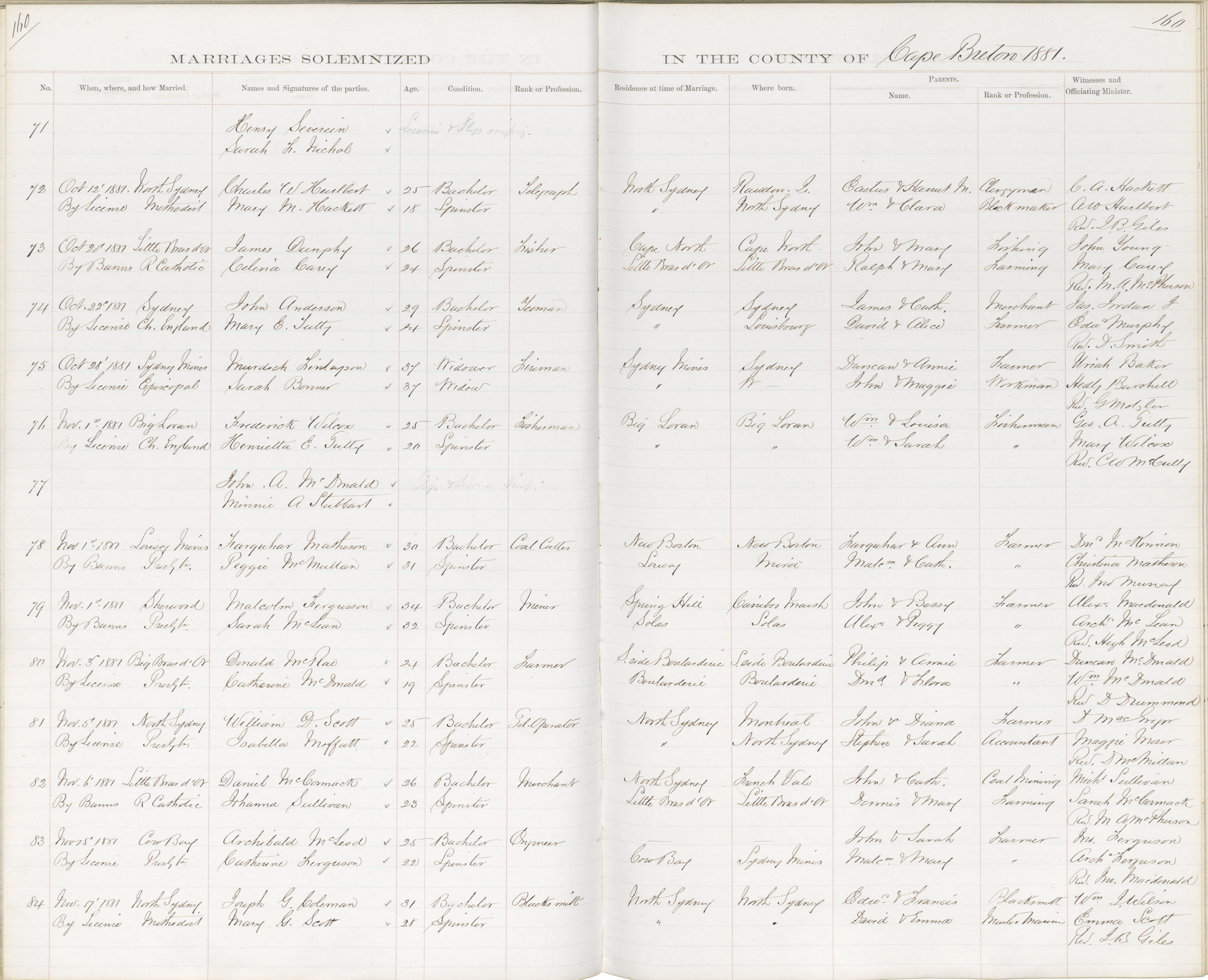 Registration: Year: 1881 book: 1804 page: 160 number: 84