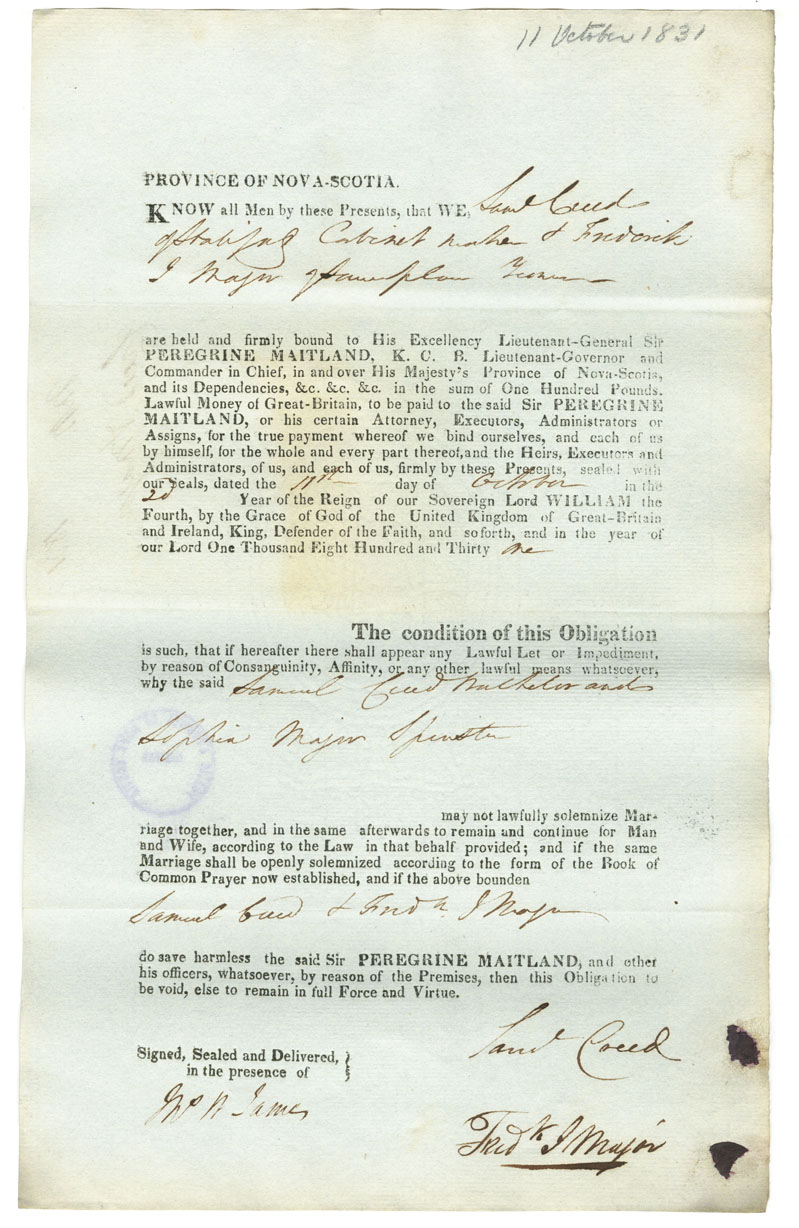 Note: signed by Frederick J. Major, Halifax, yeoman