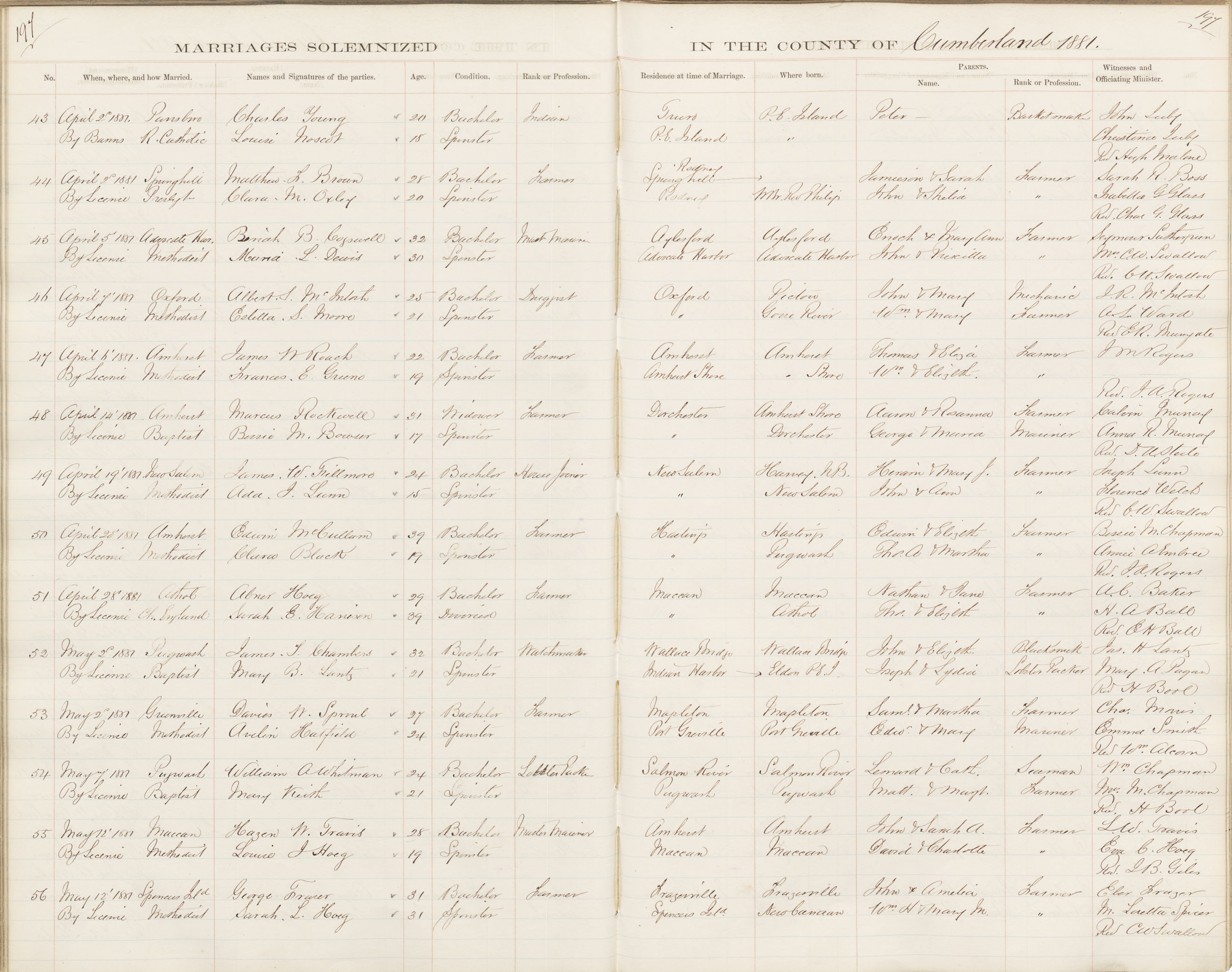 Registration: Year: 1881 book: 1809 page: 197 number: 56