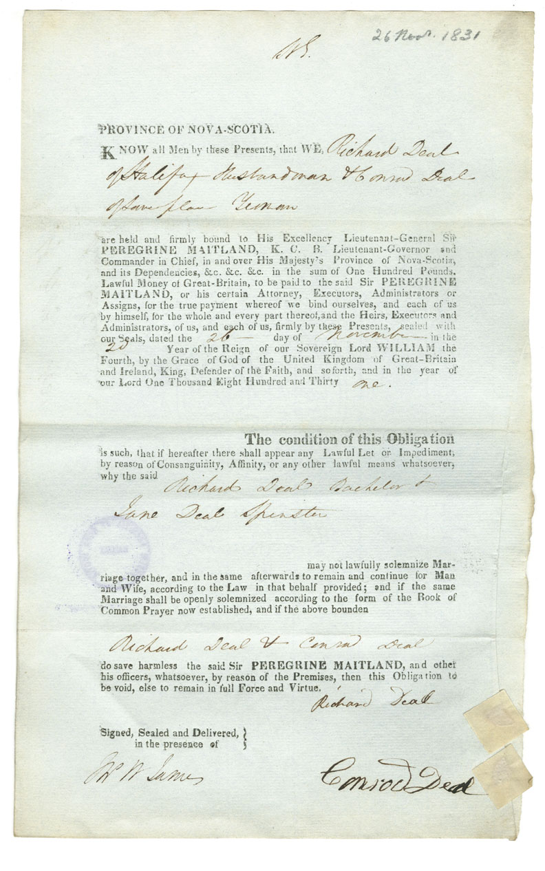 Note: signed by Conrod Deal, Halifax, husbandman