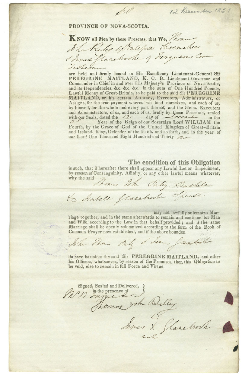 Note: signed by James Glazebrooke, Ferguson's Cove, fisherman