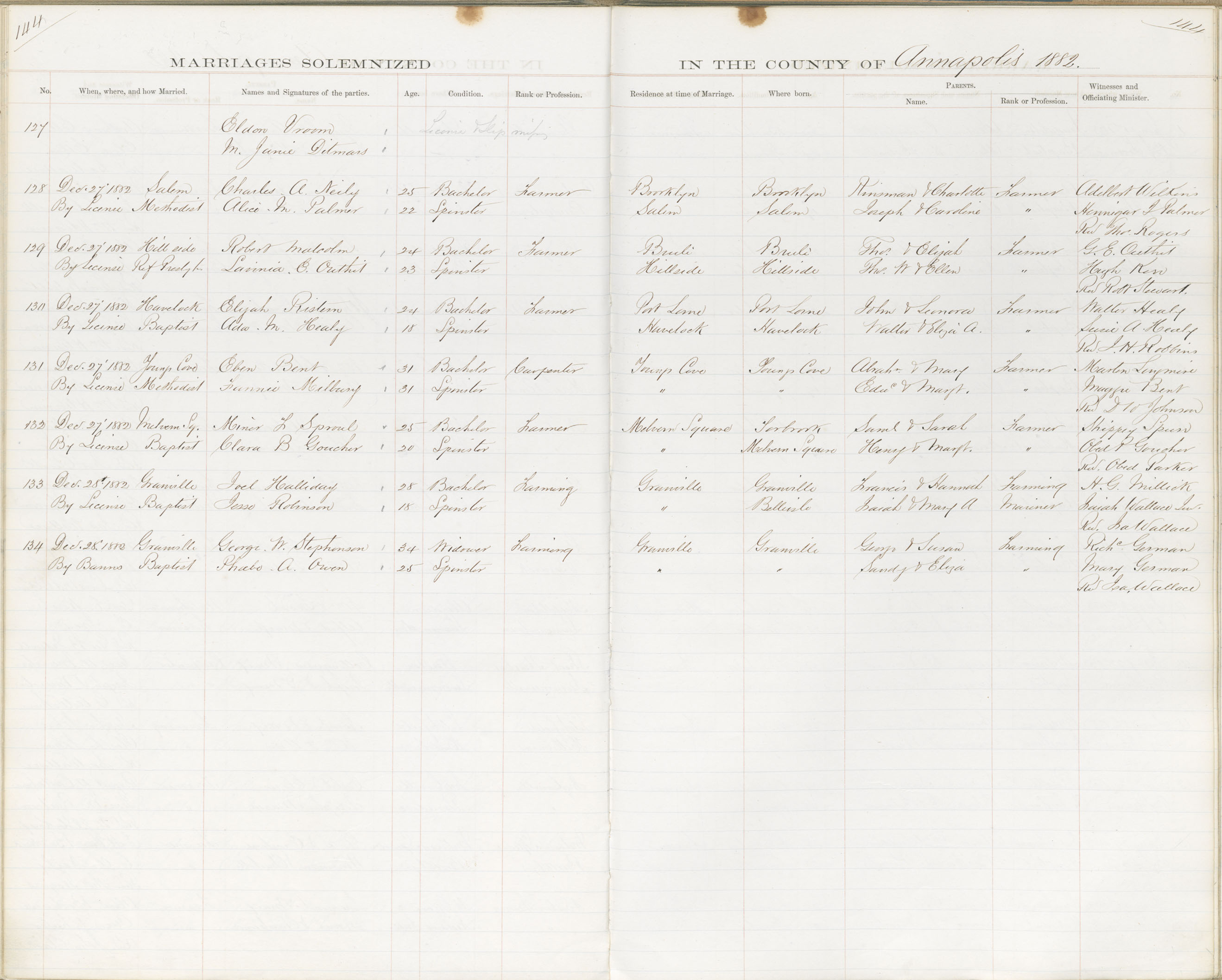 Registration: Year: 1882 book: 1801 page: 144 number: 134