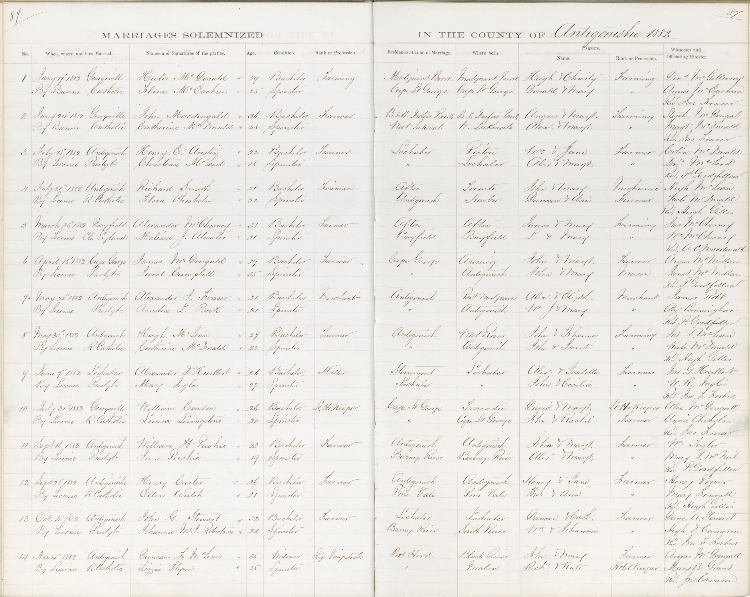 Registration: Year: 1882 book: 1803 page: 87 number: 14