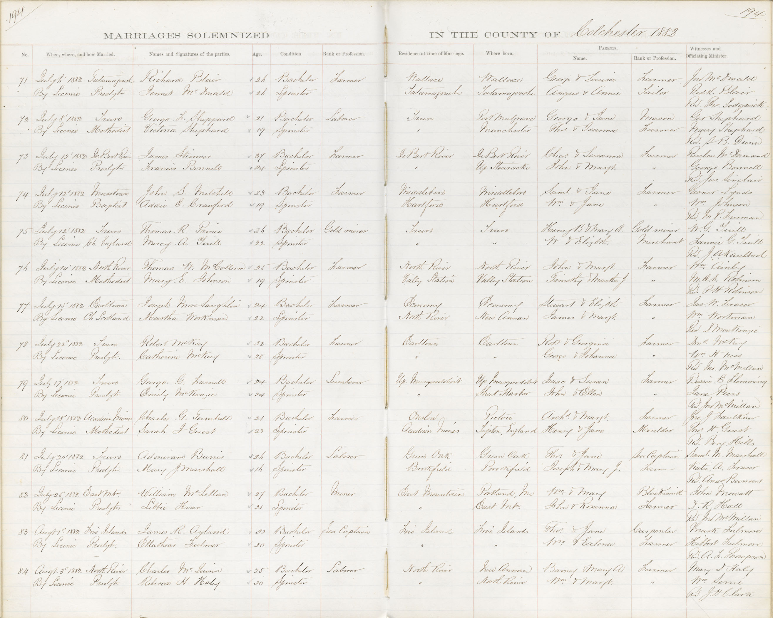 Registration: Year: 1882 book: 1806 page: 194 number: 84