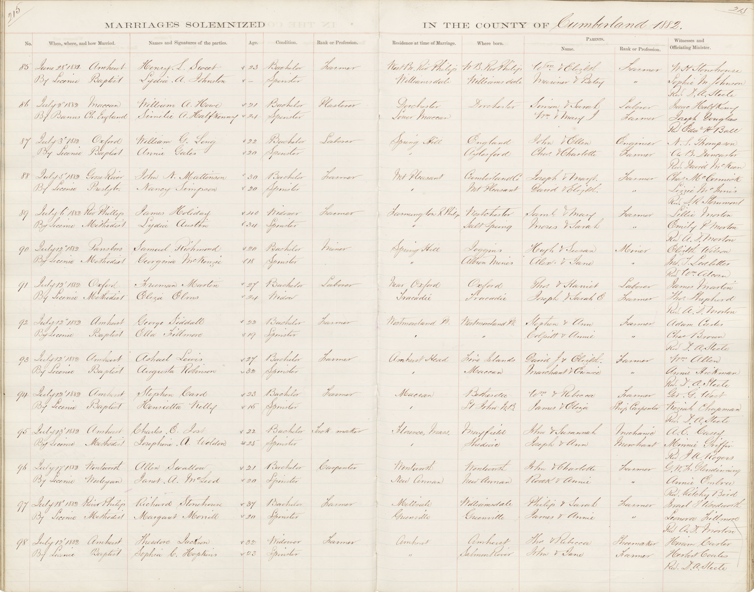 Registration: Year: 1882 book: 1809 page: 215 number: 85