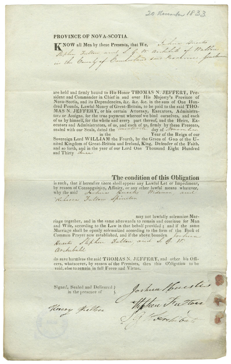 Note: signed by Stephen Fulton, Wallace, Cumberland Co., gentle