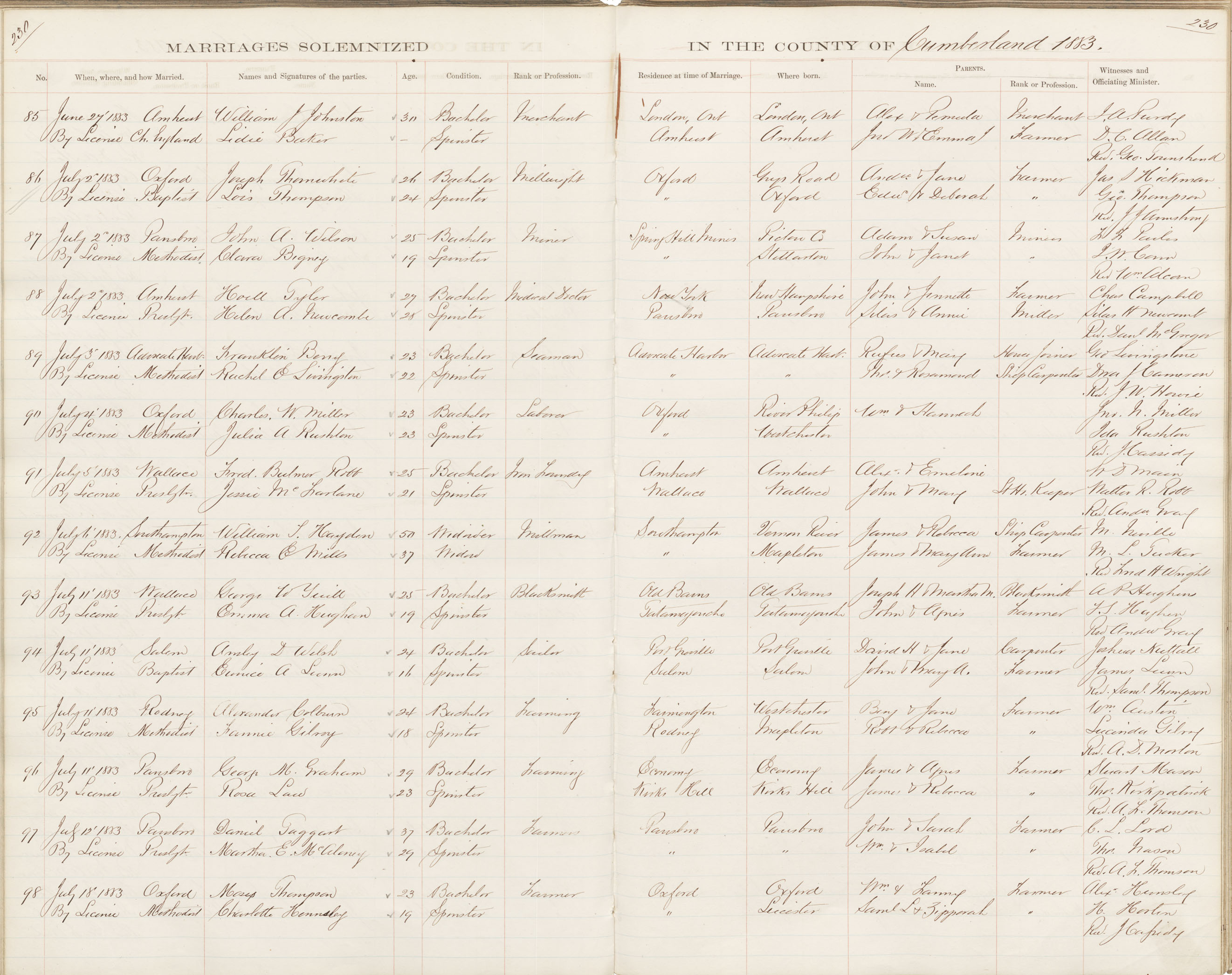 Registration: Year: 1883 book: 1809 page: 230 number: 85