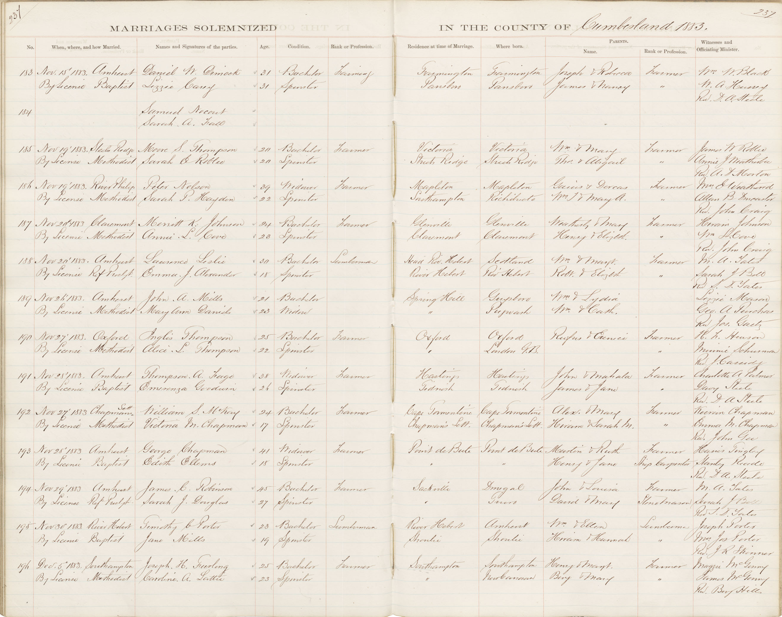 Registration: Year: 1883 book: 1809 page: 237 number: 183