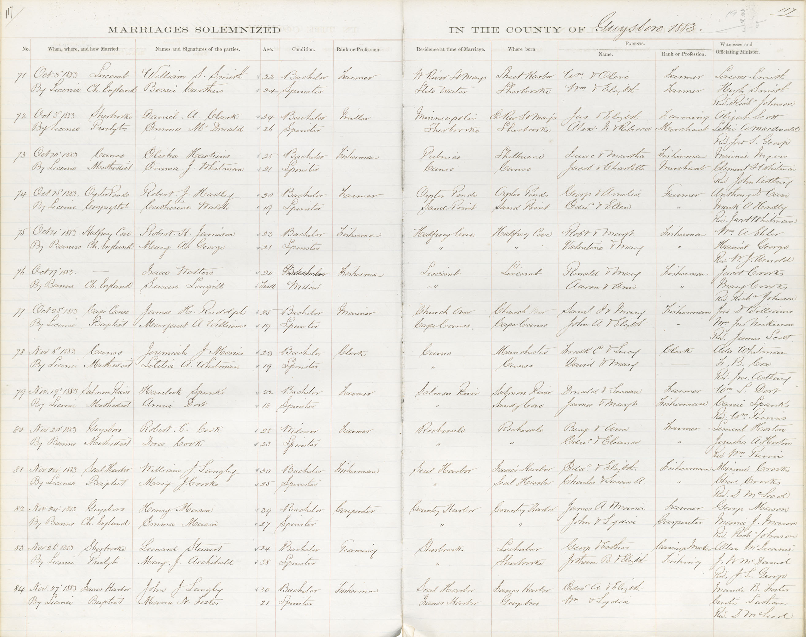 Registration: Year: 1883 book: 1814 page: 117 number: 84