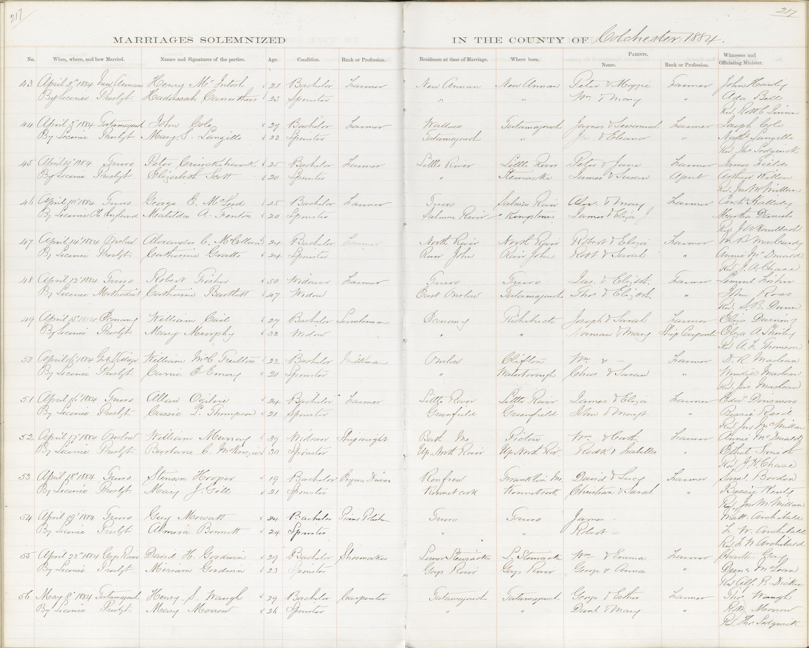 Registration: Year: 1884 book: 1806 page: 217 number: 43