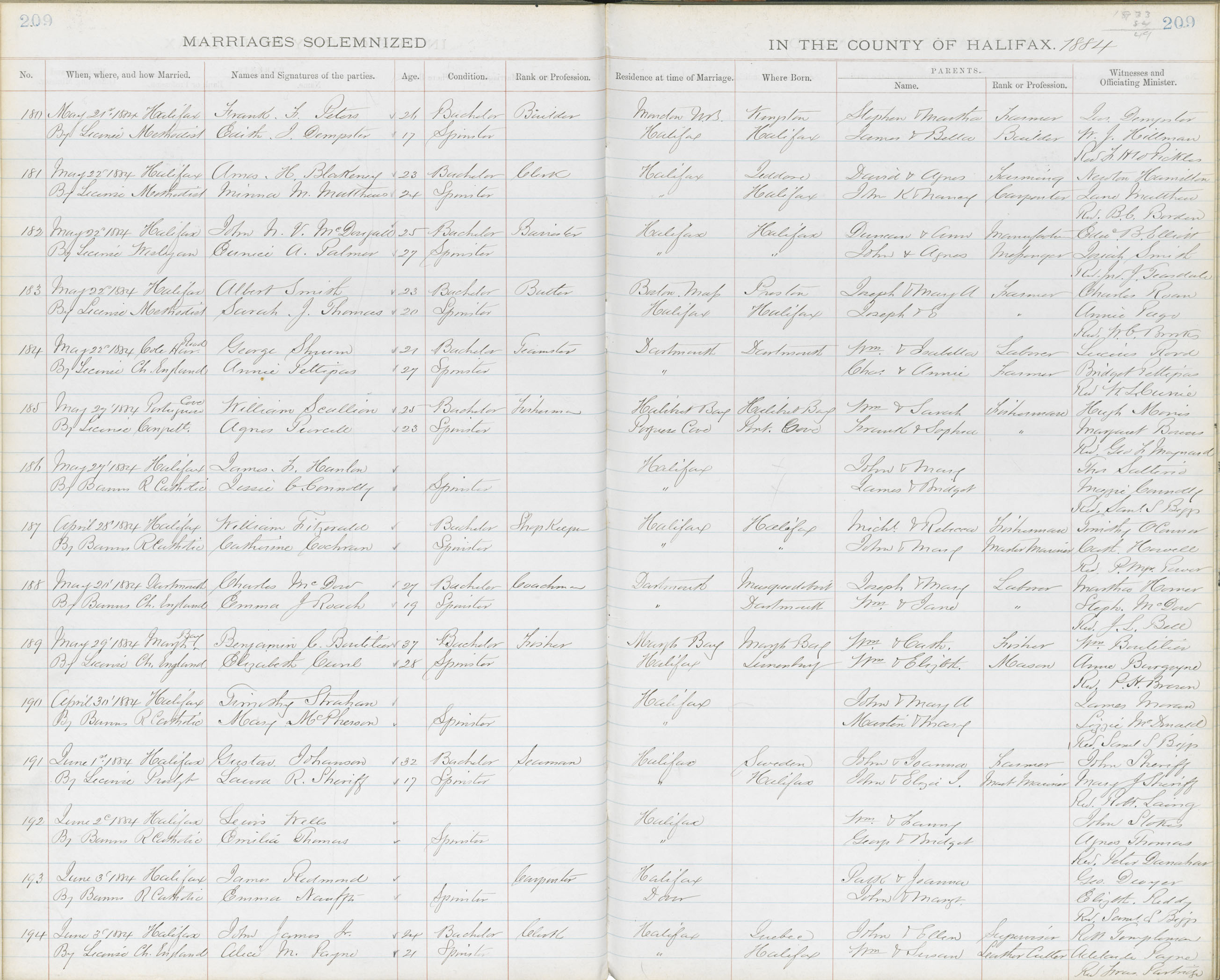 Registration: Year: 1884 book: 1817 page: 209 number: 194