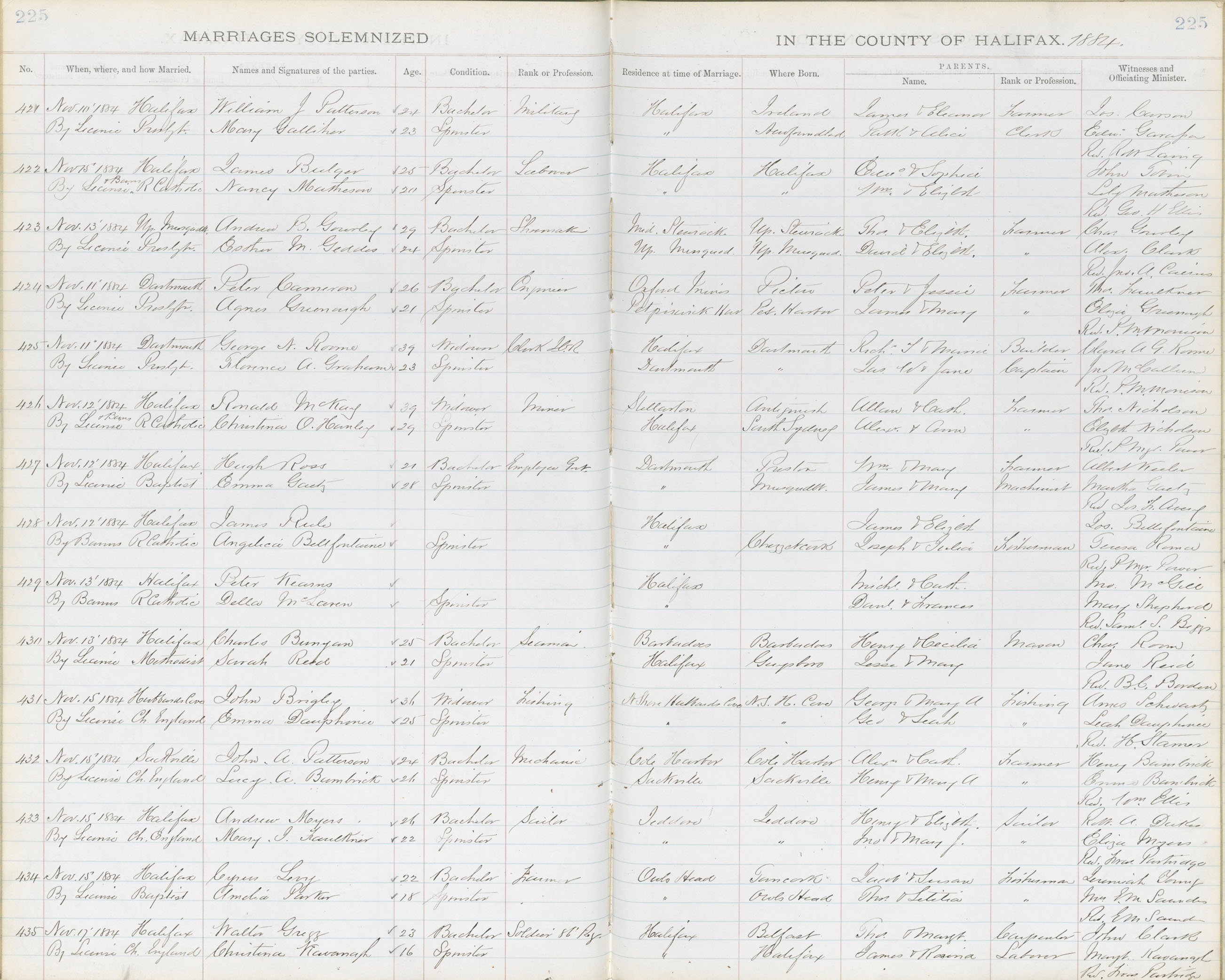 Registration: Year: 1884 book: 1817 page: 225 number: 435