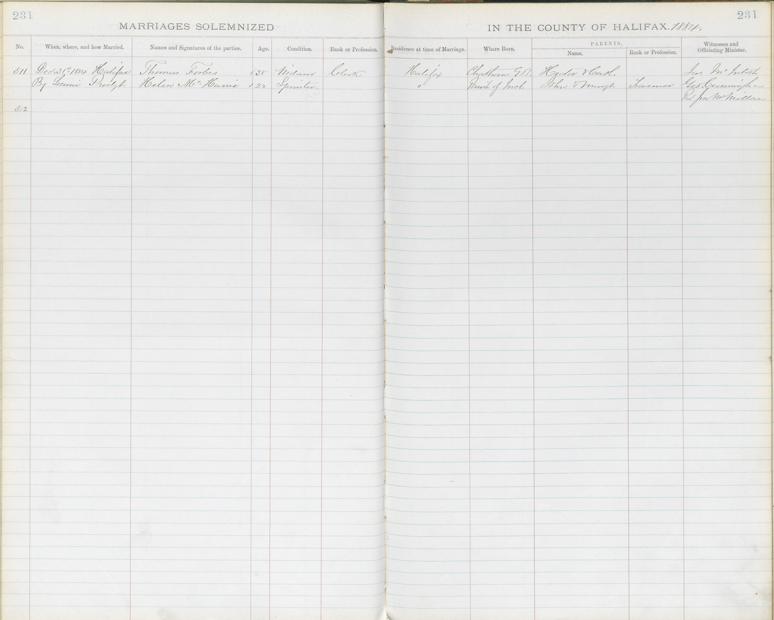 Registration: Year: 1884 book: 1817 page: 231 number: 511