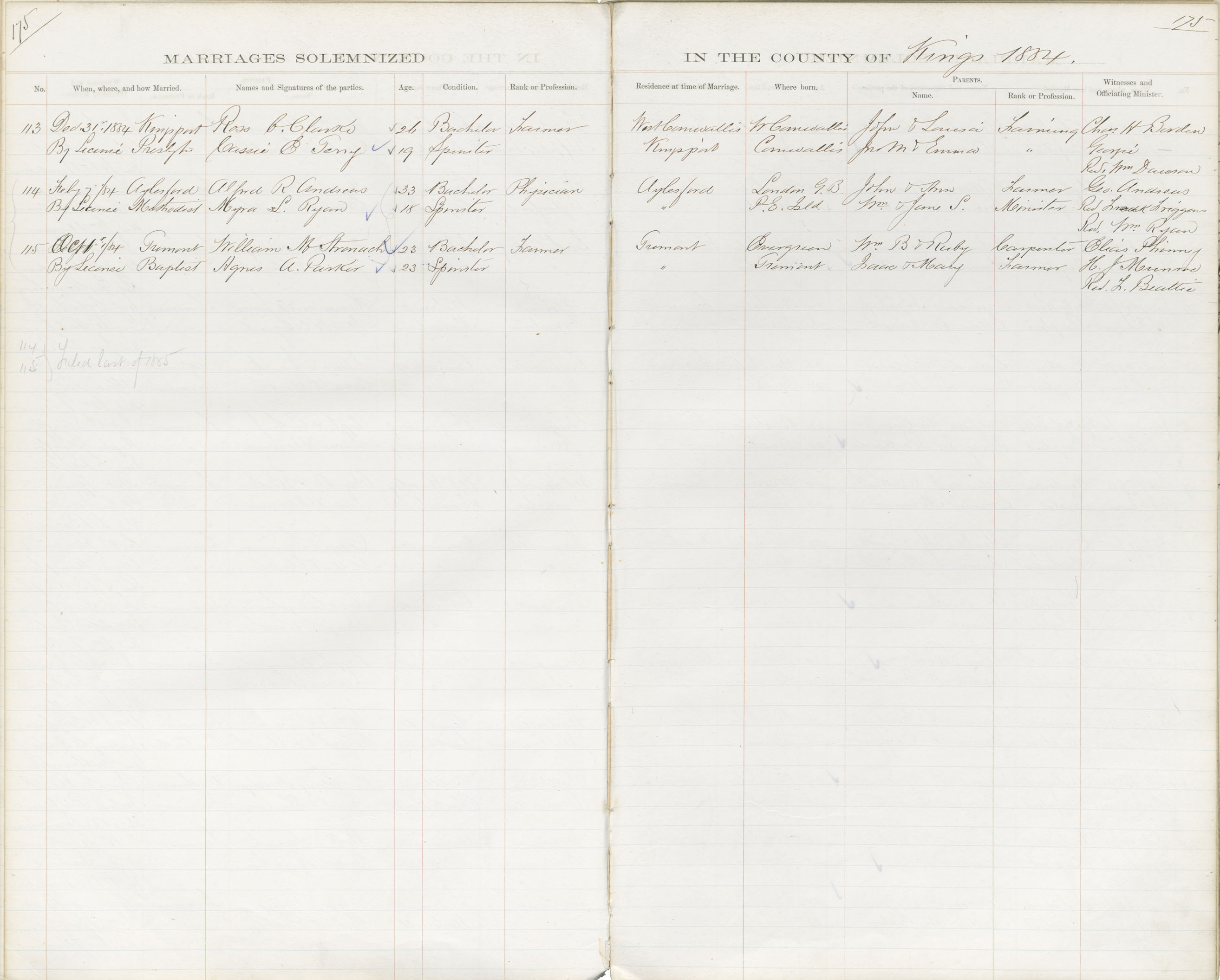 Registration: Year: 1884 book: 1826 page: 175 number: 113