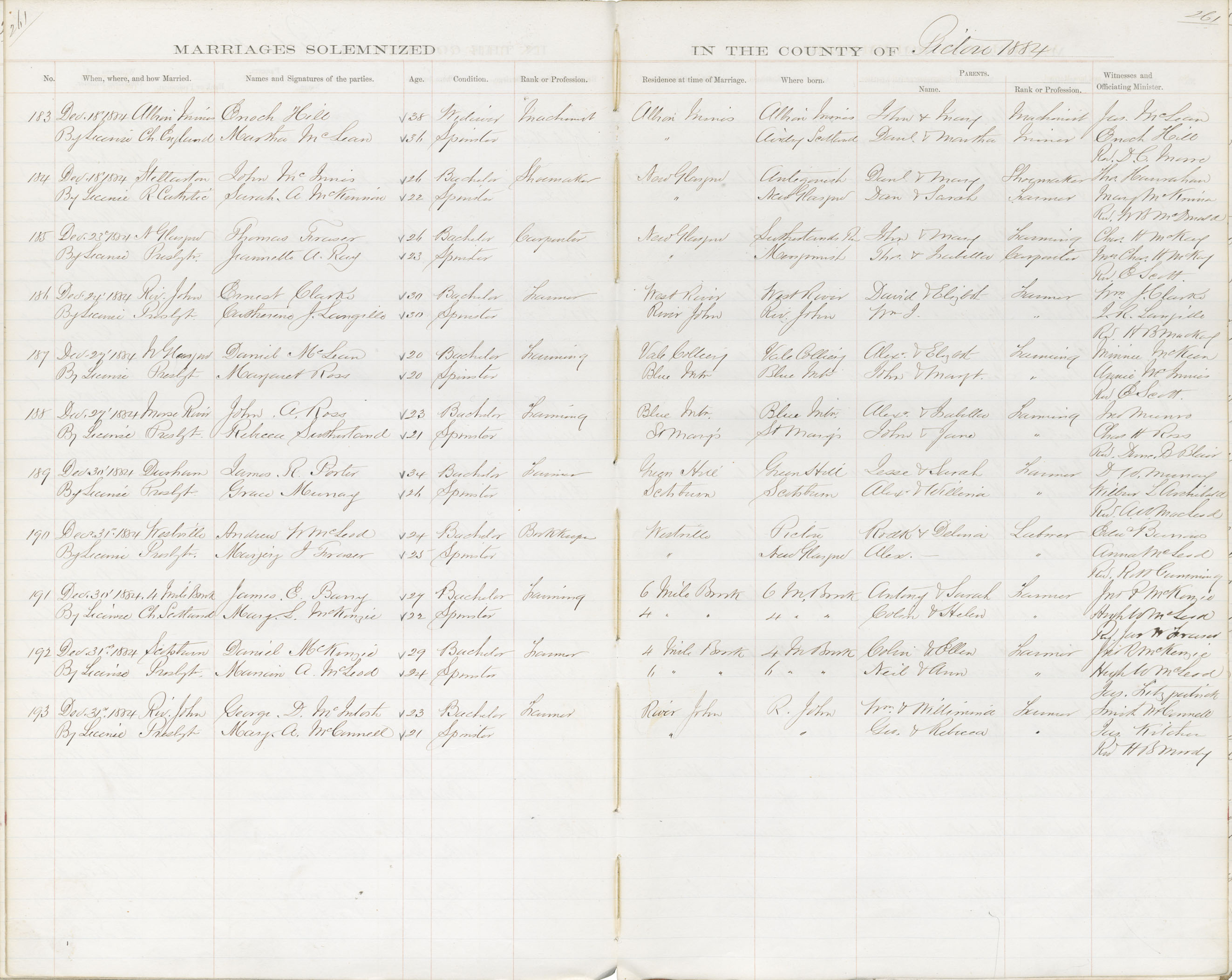 Registration: Year: 1884 book: 1831 page: 261 number: 183