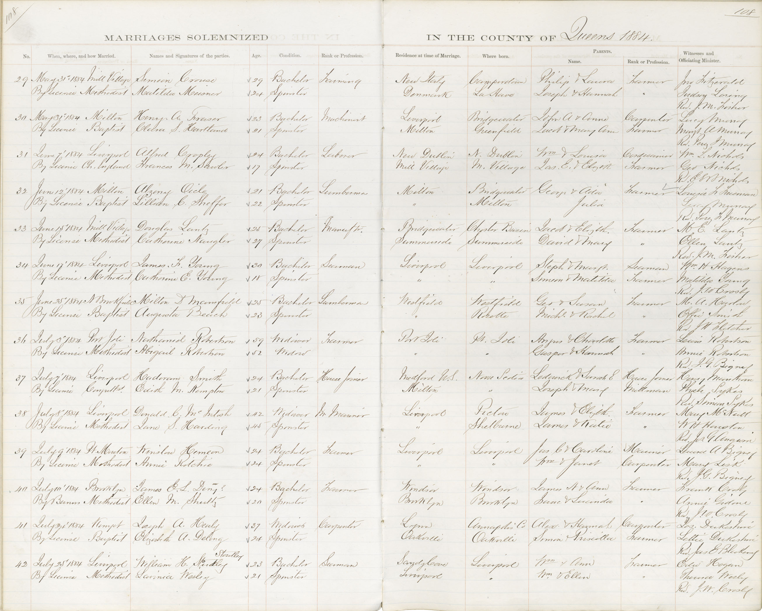 Registration: Year: 1884 book: 1834 page: 108 number: 29
