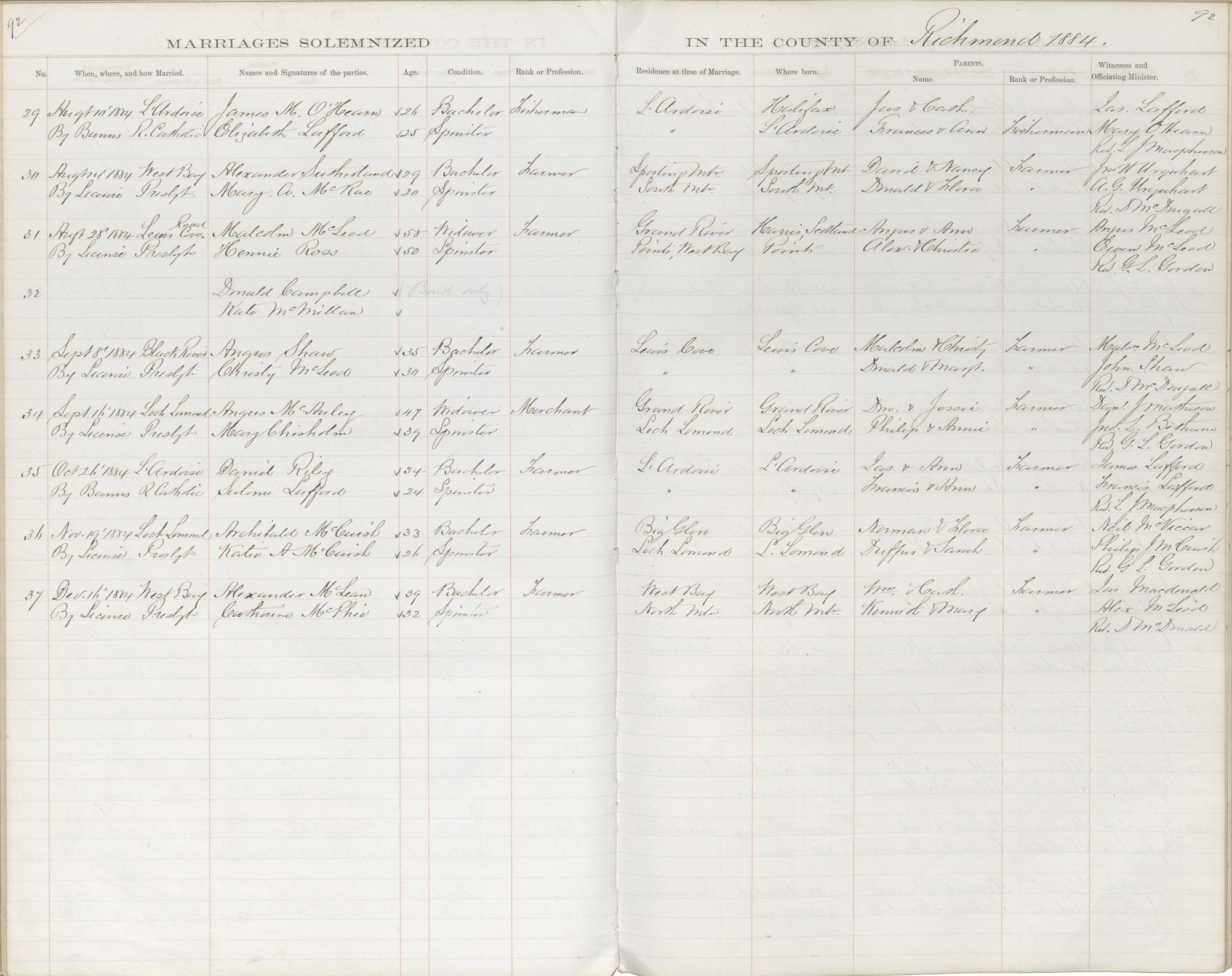 Registration: Year: 1884 book: 1835 page: 92 number: 29