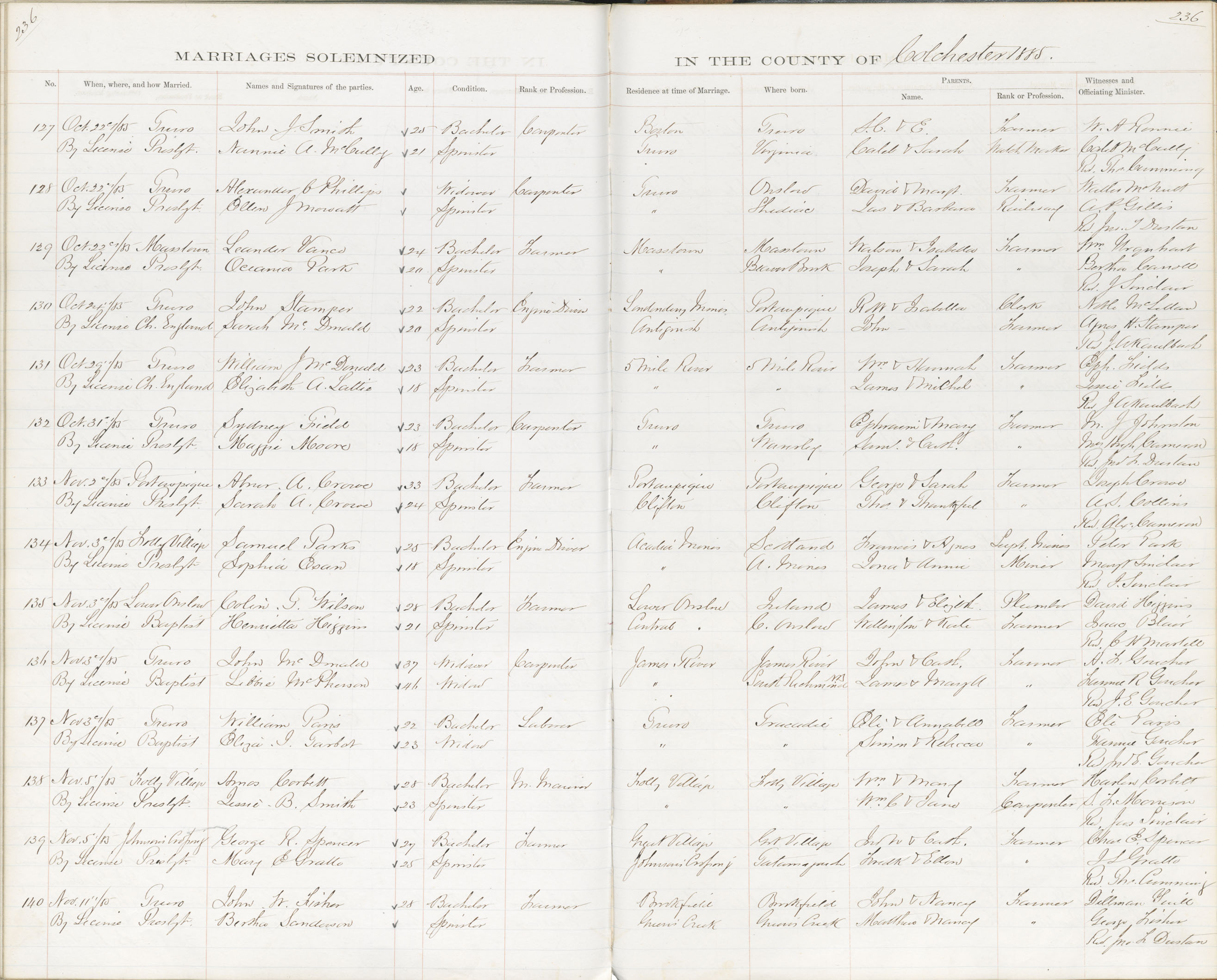 Registration: Year: 1885 book: 1806 page: 236 number: 140