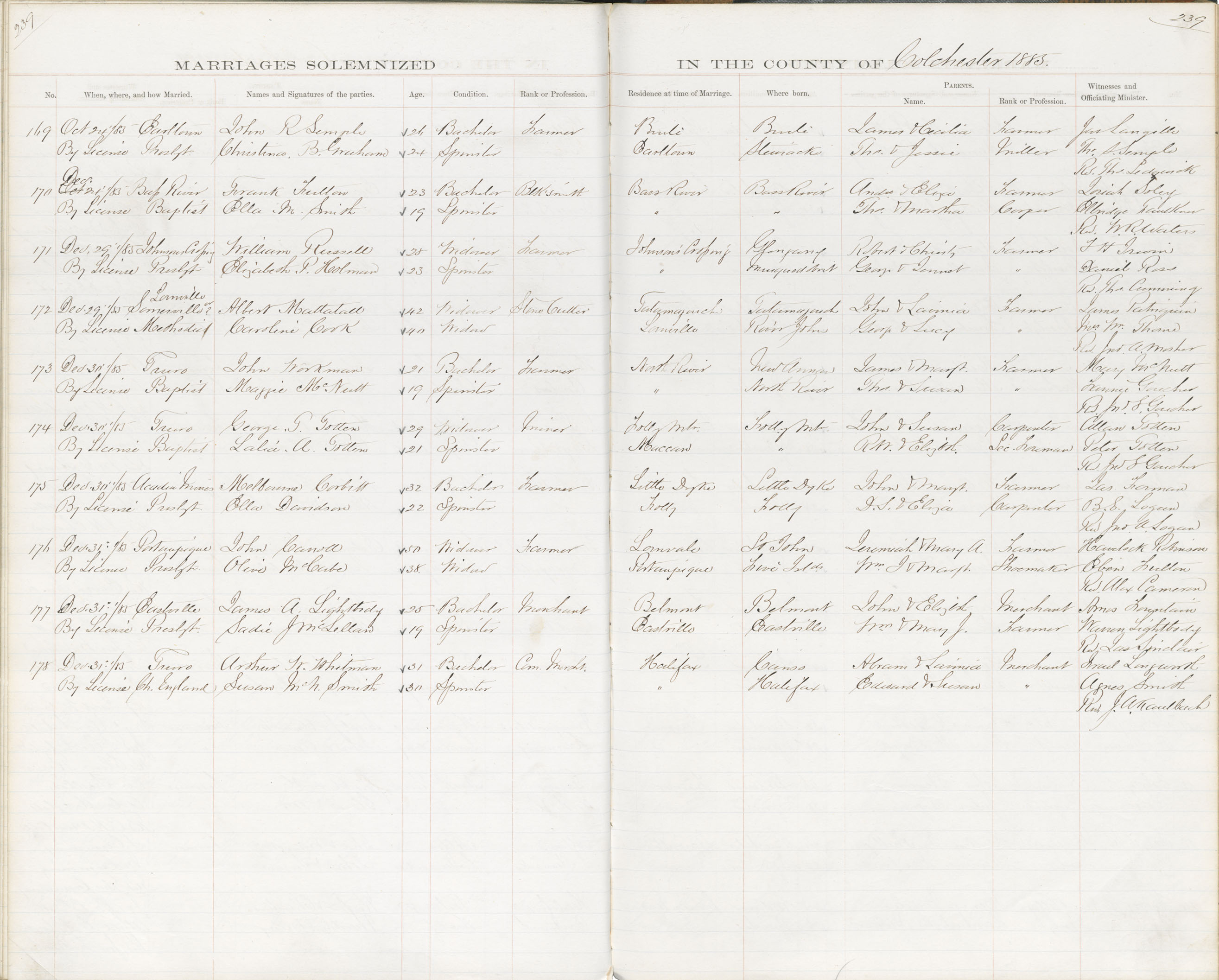 Registration: Year: 1885 book: 1806 page: 239 number: 178
