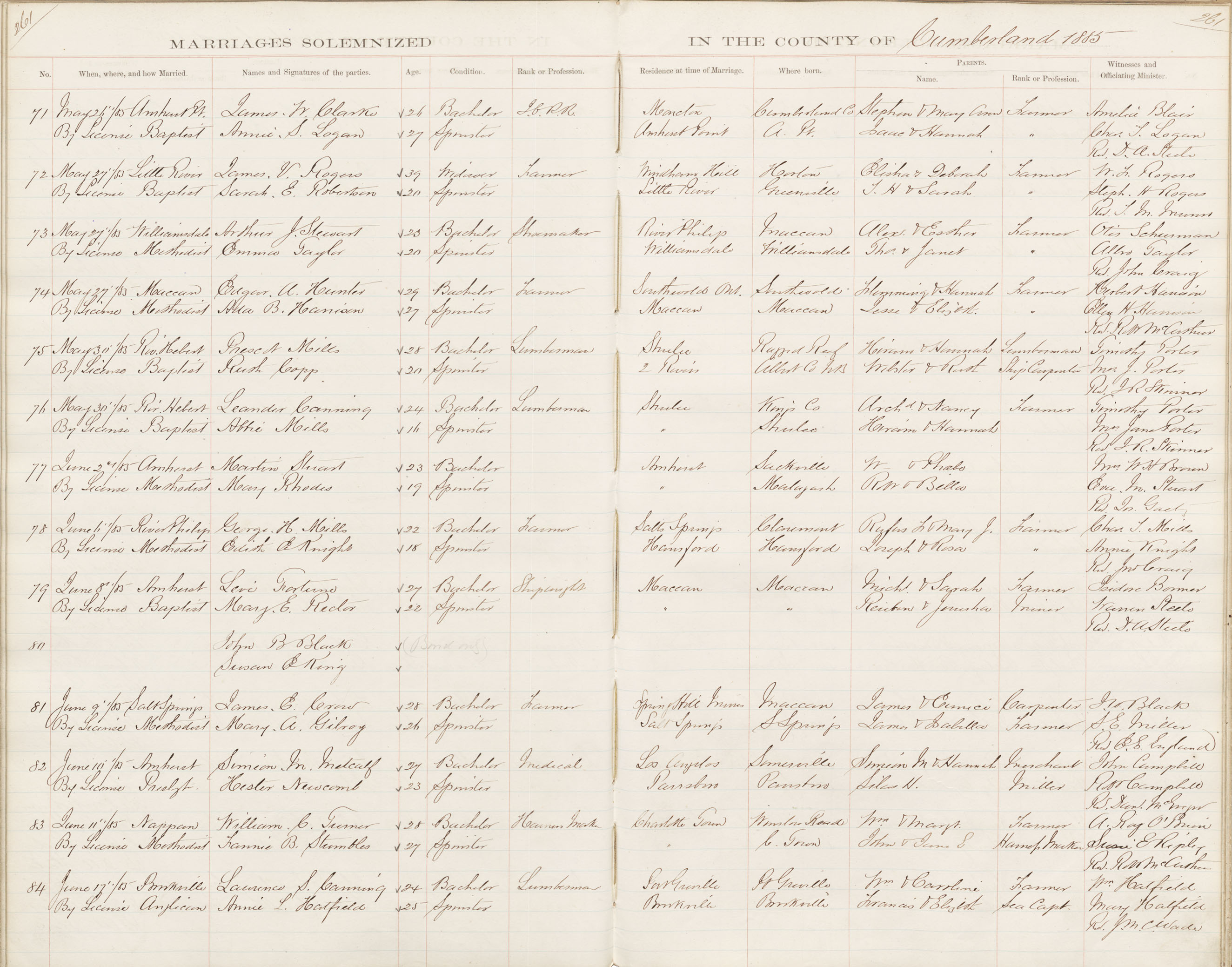 Registration: Year: 1885 book: 1809 page: 261 number: 84