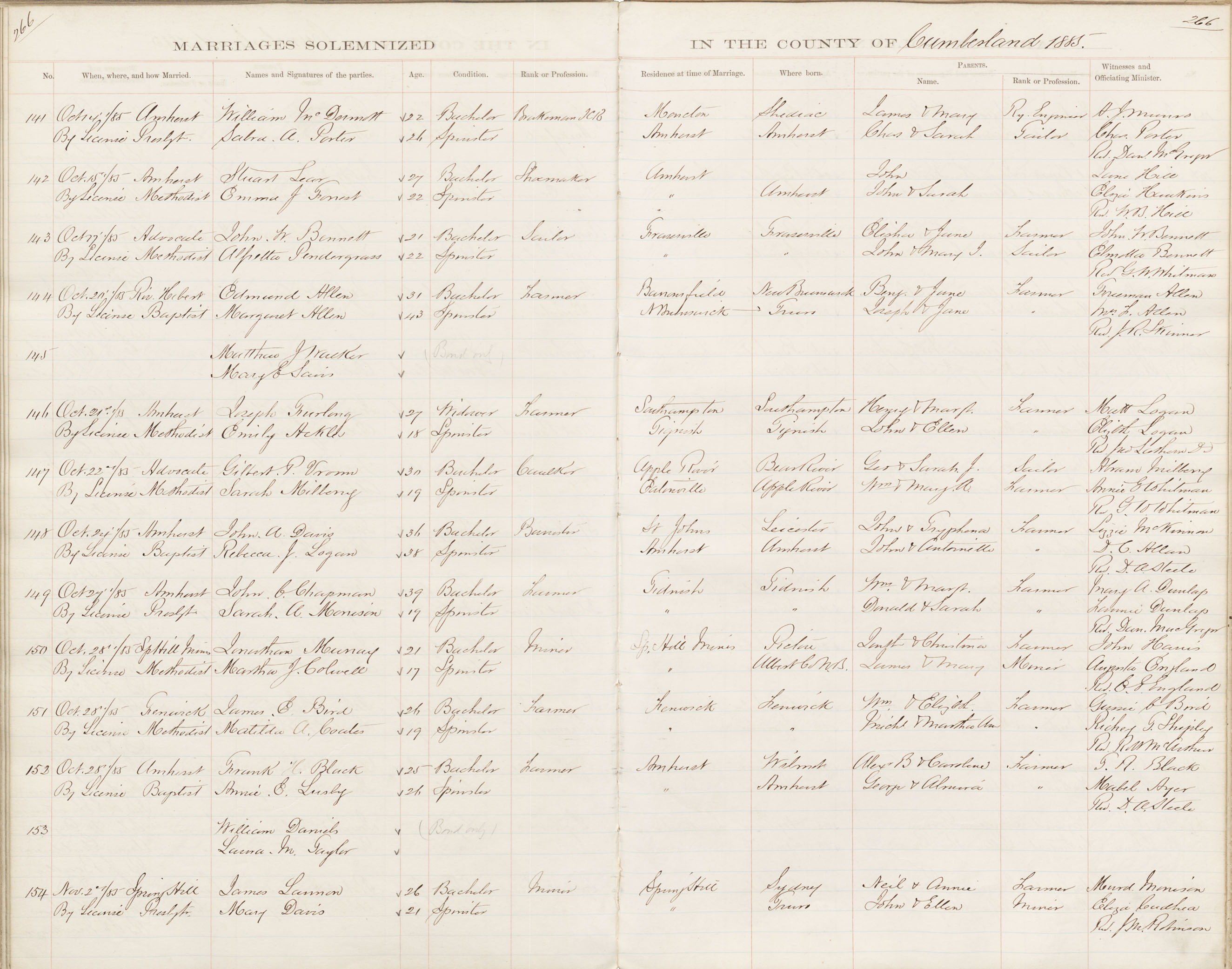 Registration: Year: 1885 book: 1809 page: 266 number: 141