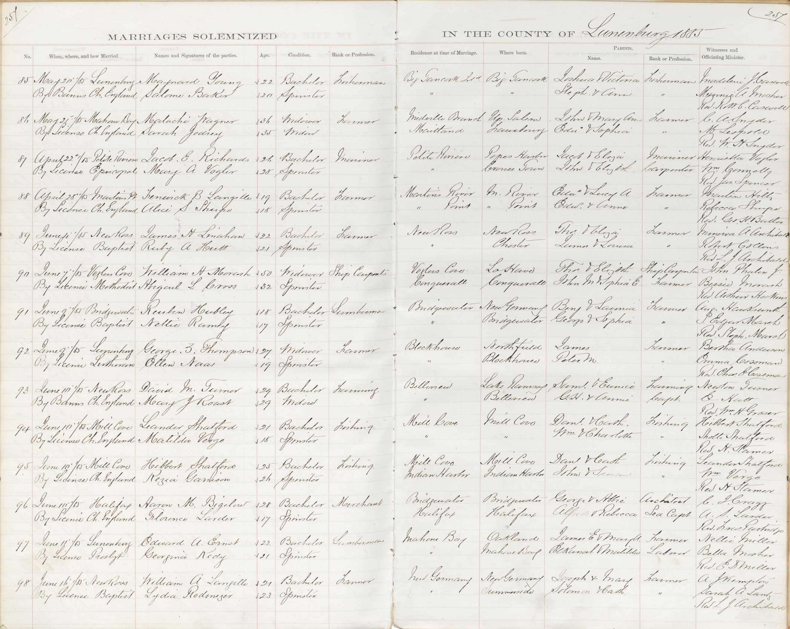 Registration: Year: 1885 book: 1828 page: 257 number: 85